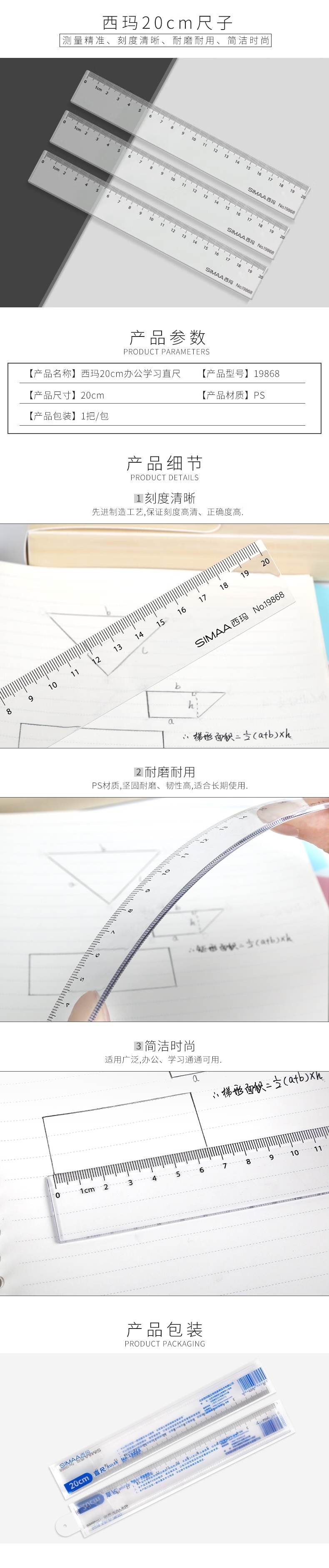 西瑪20cm辦公尺子 通用直尺 學(xué)生文具繪圖直尺 19868(10個(gè)起售) 自營(yíng)
