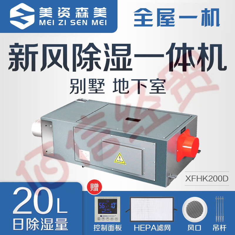 美資森美(MEIZISENMEI)新風(fēng)除濕凈化一體機(jī)吊裝式中央管道除濕機(jī)商用別墅地下室換氣隱藏安裝吊頂全屋一機(jī)單向流 XFHK200D 自營