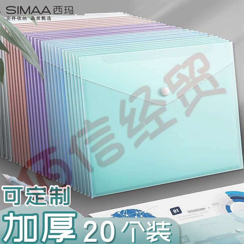 西瑪(SIMAA)20個(gè)裝 A4按扣學(xué)生莫蘭迪彩色文件袋 防水試卷資料收納袋 辦公文件檔案袋 辦公用品 文具 21273 自營(yíng)