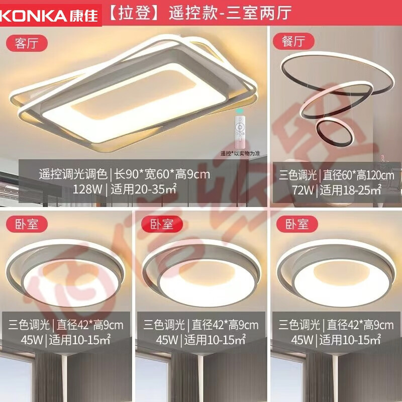 康佳(KONKA)LED吸頂燈后現(xiàn)代高端線條客廳臥室餐廳燈具燈飾套餐 【拉登】3室2廳 自營