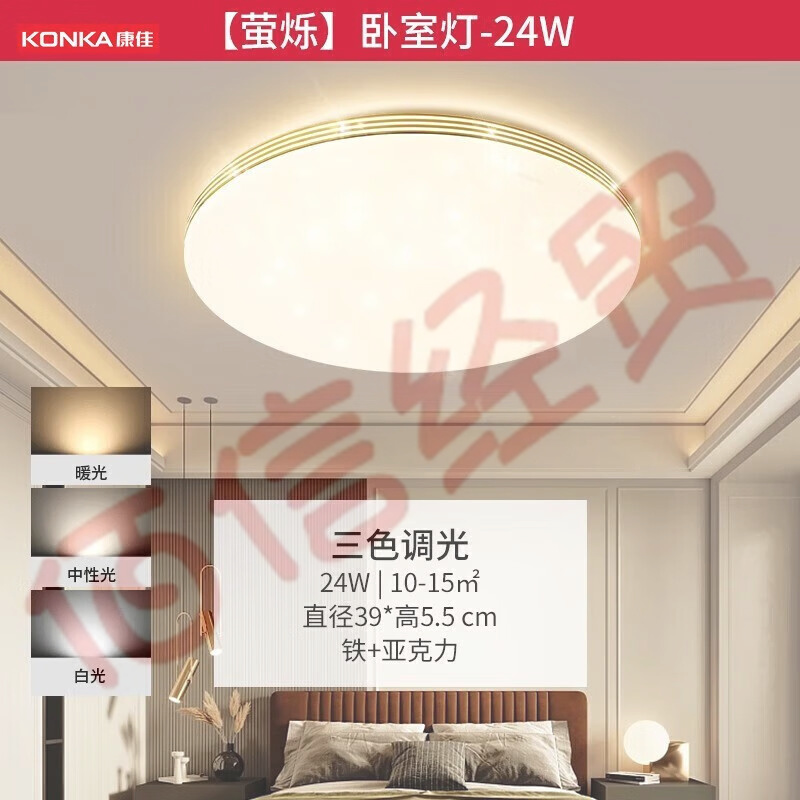 康佳(KONKA)客廳燈臥室護眼吸頂燈書房兒童房防藍光防頻閃led 三色調(diào)光圓臥室燈 自營
