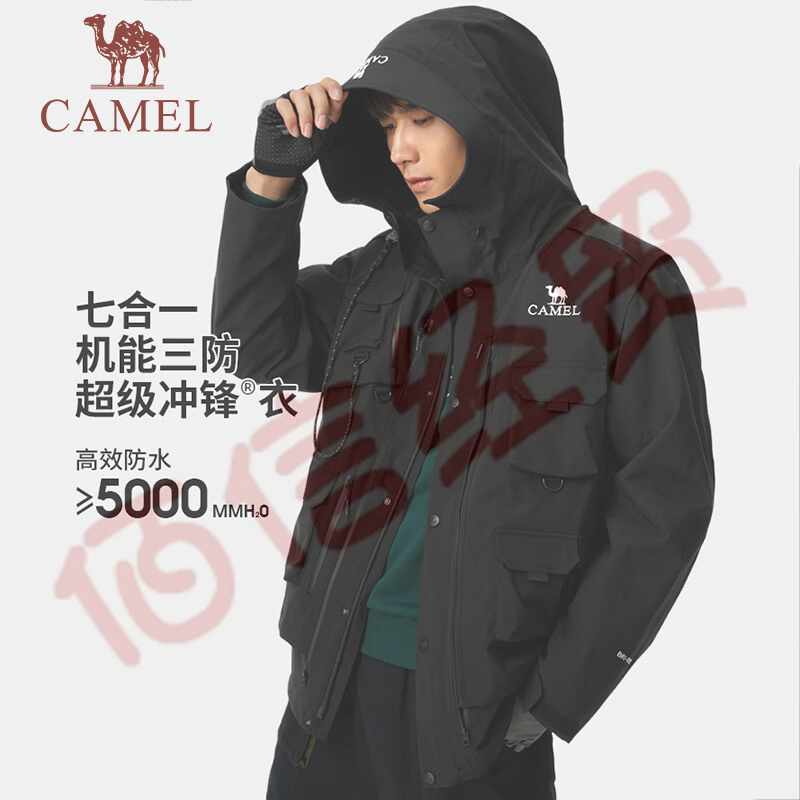 駱駝沖鋒衣男2023秋冬工裝多口袋可拆馬甲外套七合一抓絨防水登山服 橡木灰/深橄欖/黑,女生拍小1碼 L 自營(yíng)