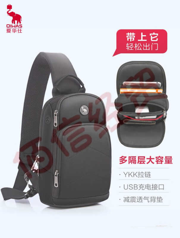 愛華仕男士胸包單肩包休閑運(yùn)動斜挎包男士通勤包包大學(xué)生輕便手機(jī)包5673 黑色 自營