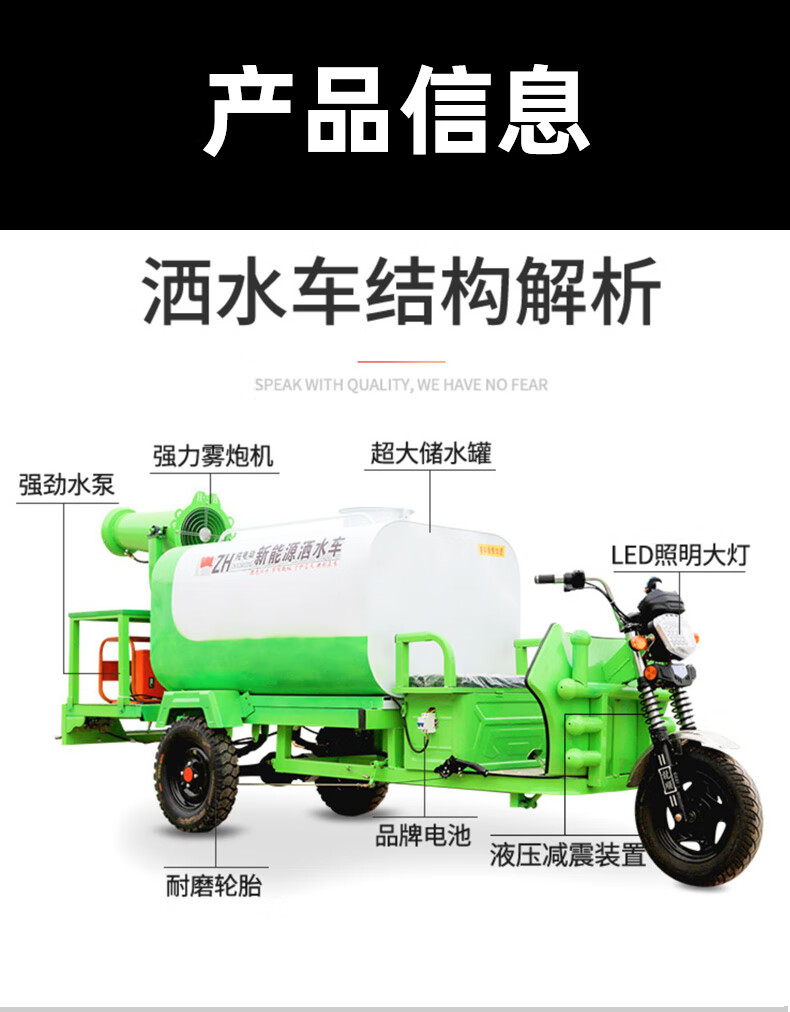 利晨 新能源電動(dòng)三輪灑水車工地噴灑車綠化灑水車除塵霧炮垃圾車環(huán)衛(wèi)車運(yùn)水車多功能小型噴霧車1.5方純電版 自營