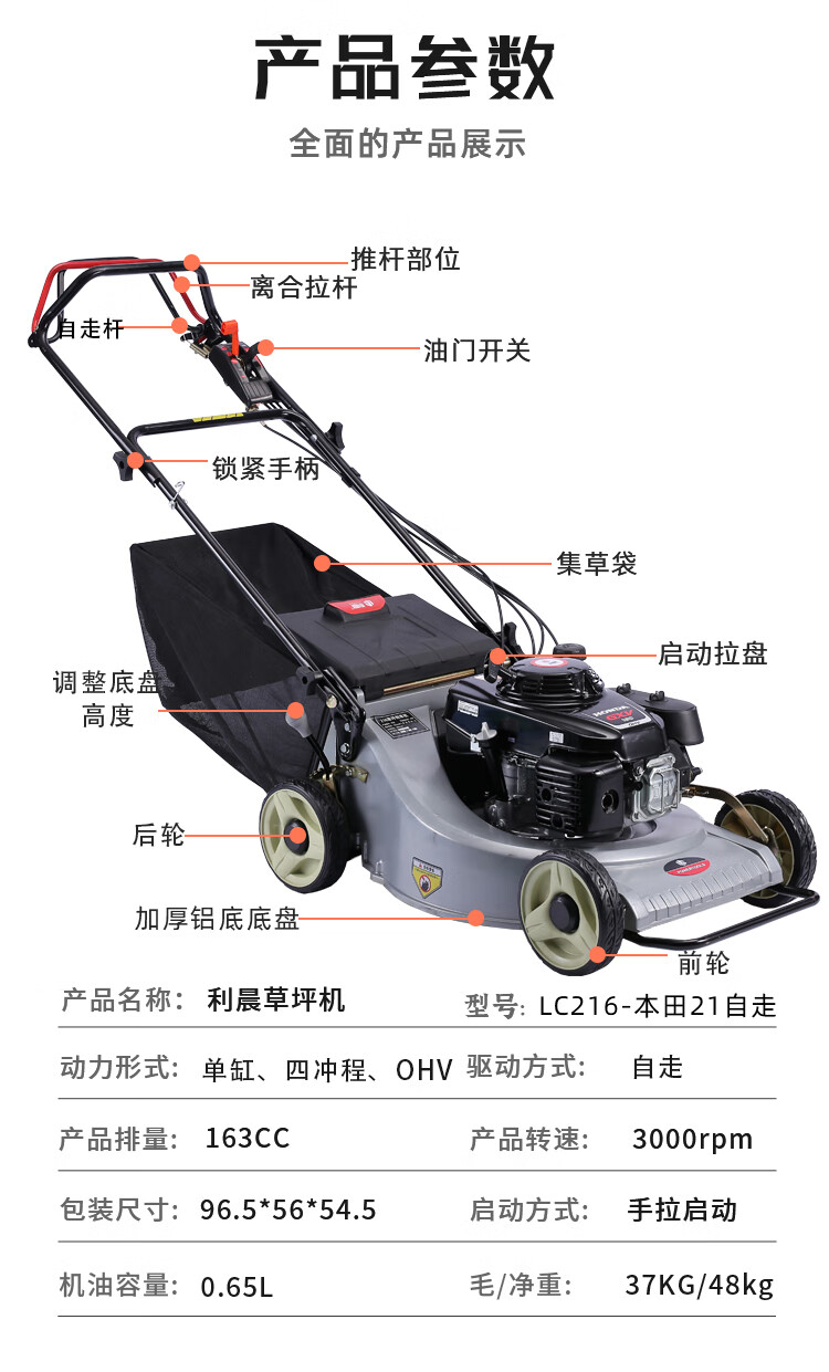 ¥4820.00利晨 割草機(jī)汽油機(jī)除草機(jī)草坪機(jī)修剪機(jī)打草機(jī)剪草機(jī)推草機(jī)修草機(jī) HRJ216自走型21寸(含草袋)