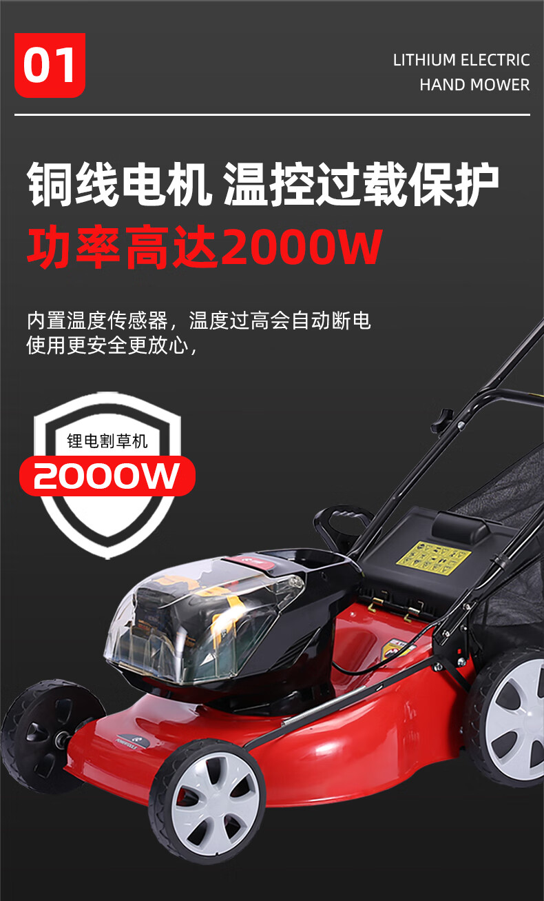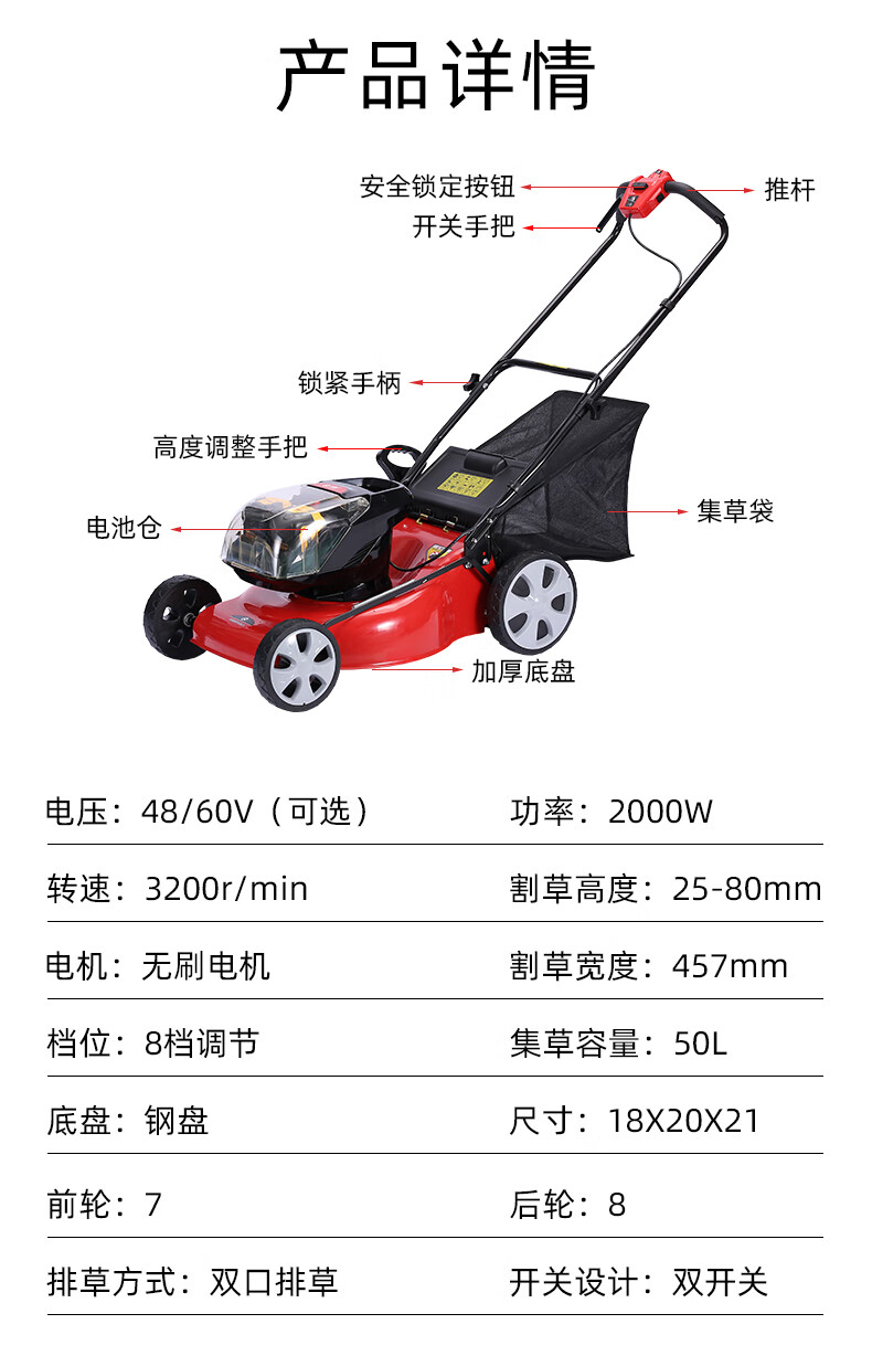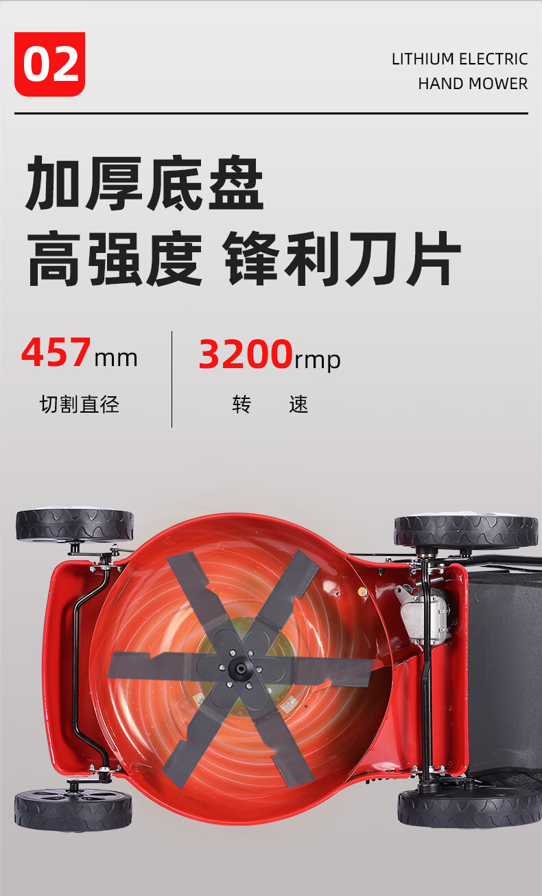 利晨 60V充電式電動手推式剪草機割草機打草機草坪機家用推草機別墅用割草機園藝打理草坪修剪庭院園林修剪機(電動草坪機-60V) 自營