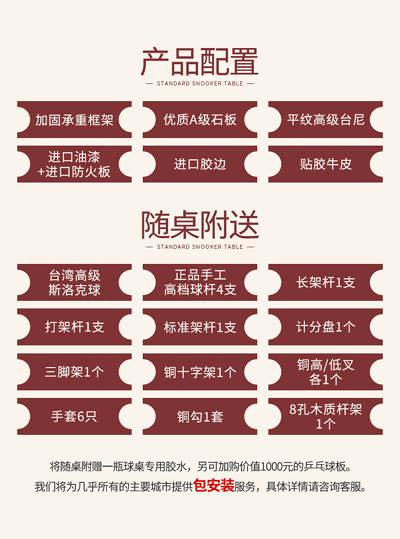 健倫(JEEANLEAN)JLAB154斯諾克臺(tái)球桌標(biāo)準(zhǔn)成人家用桌球桌十二尺臺(tái)球桌 頂配版 自營(yíng)