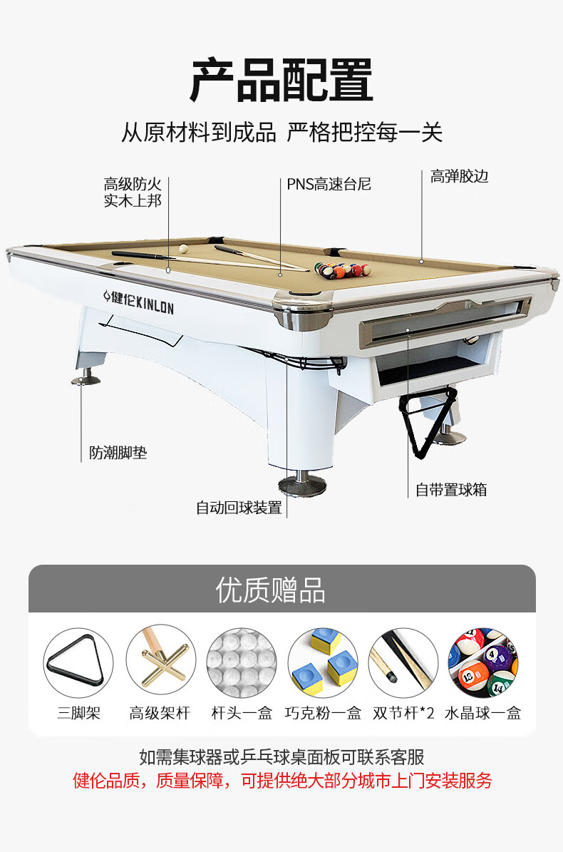 健倫(JEEANLEAN)美式臺球桌九球桌球臺家用臺球桌桌球案子球廳球房俱樂部 JL-S15 自營