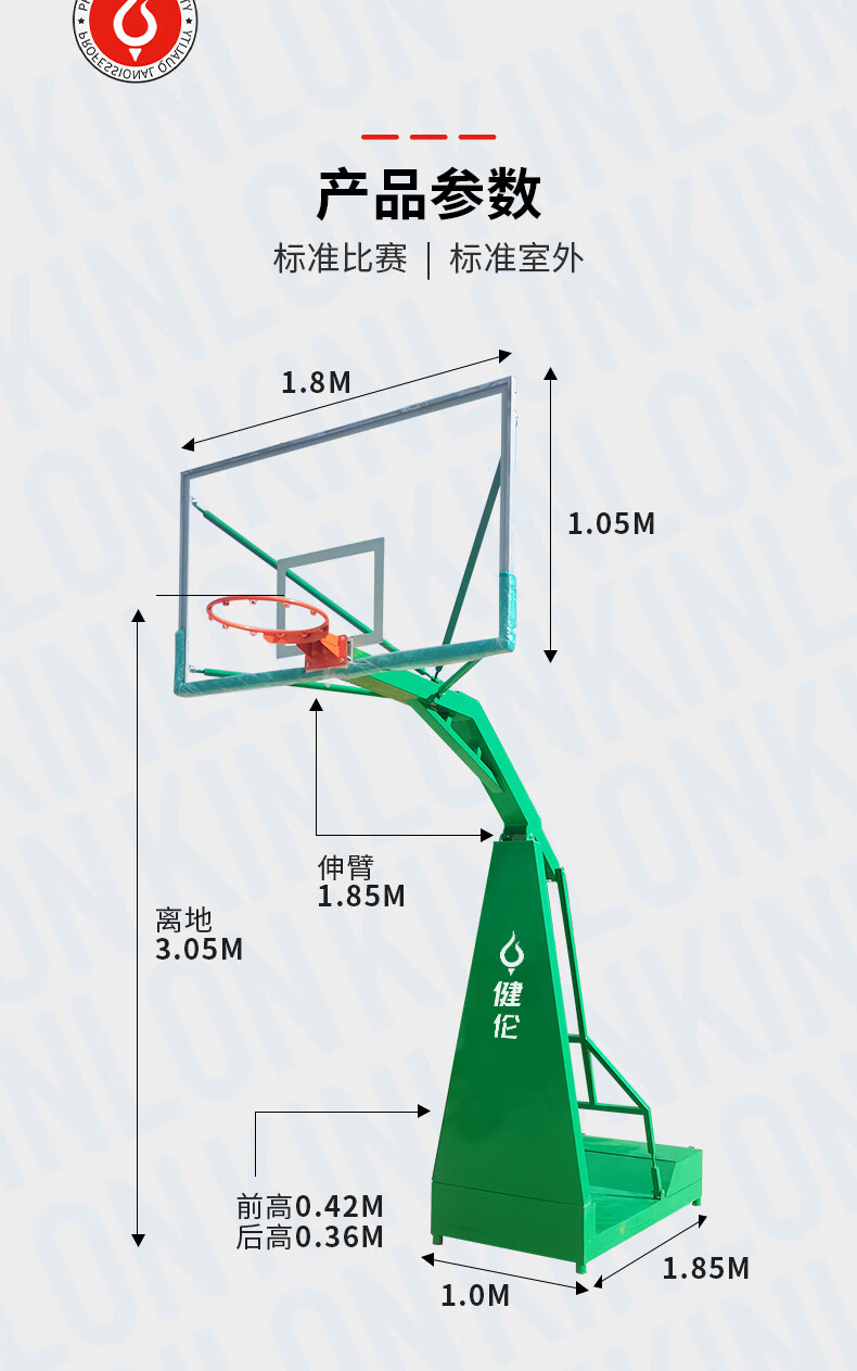 健倫(JEEANLEAN)JLAA163比賽訓(xùn)練專用加厚加粗立柱升級款凹箱籃球架/只 自營