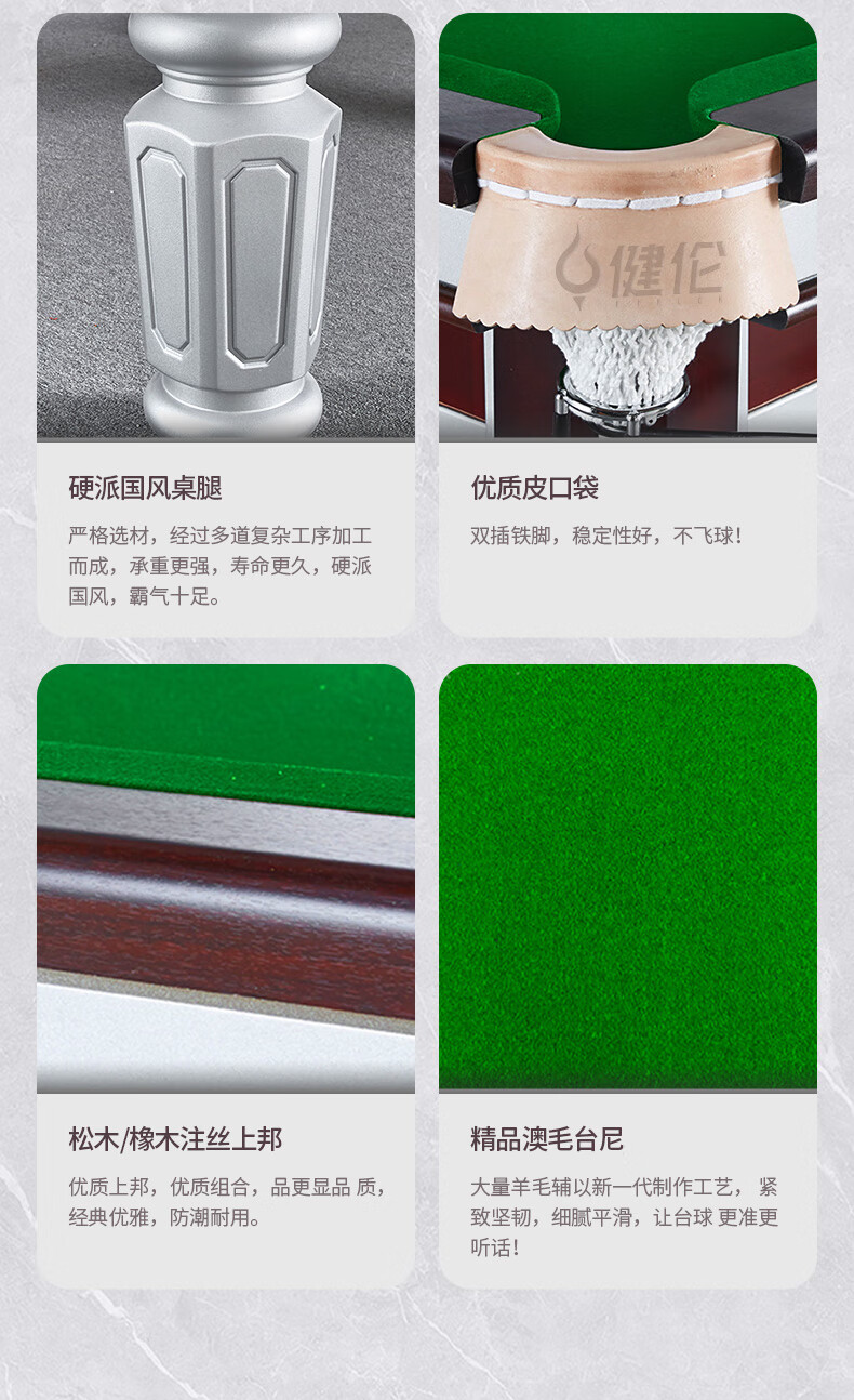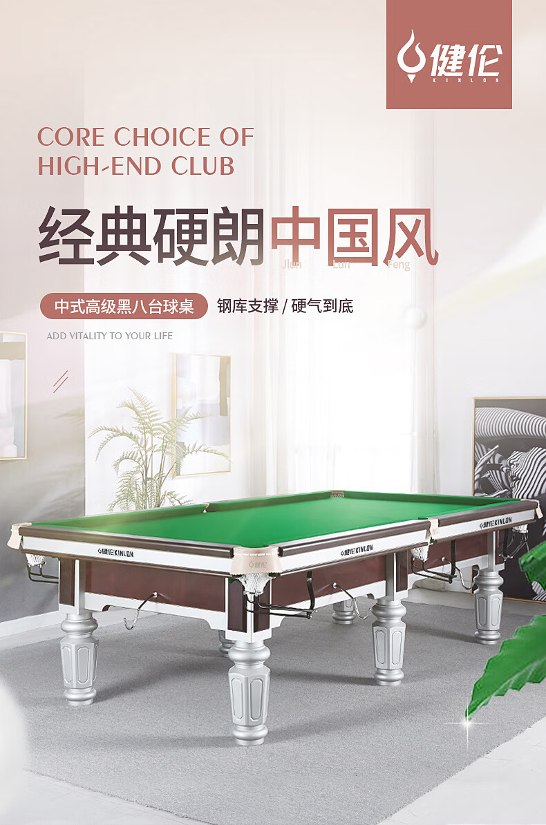 健倫臺球桌 鋼庫銀腿 標準九尺家用高端美式黑八 采購款JLAB128 自營