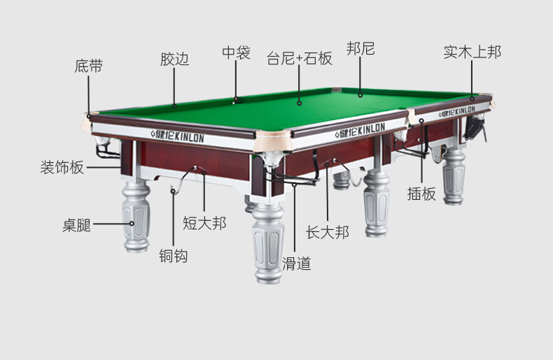 健倫(JEEANLEAN)JLAB133 臺(tái)球桌 鋼庫銀腿 九尺家用高端美式黑八 全包采購款 自營
