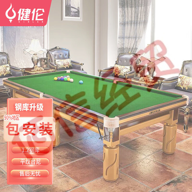 健倫(JEEANLEAN)JLAB117黑八鋼庫臺球桌旋風(fēng)腿標(biāo)準(zhǔn)成人桌球臺 9尺臺高配版 自營
