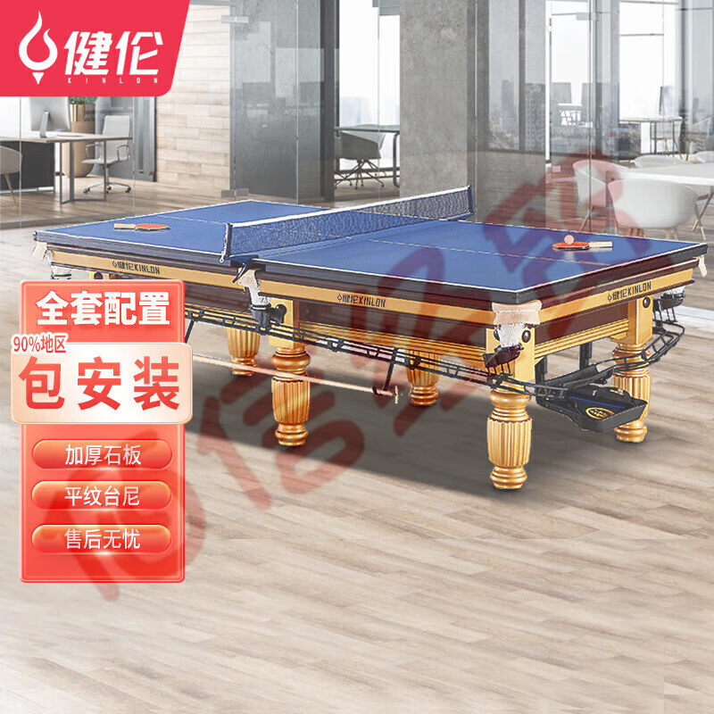 健倫(JEEANLEAN)JLAB105標準成人臺球桌 家用臺黑八美式桌球臺中式頂配款 自營