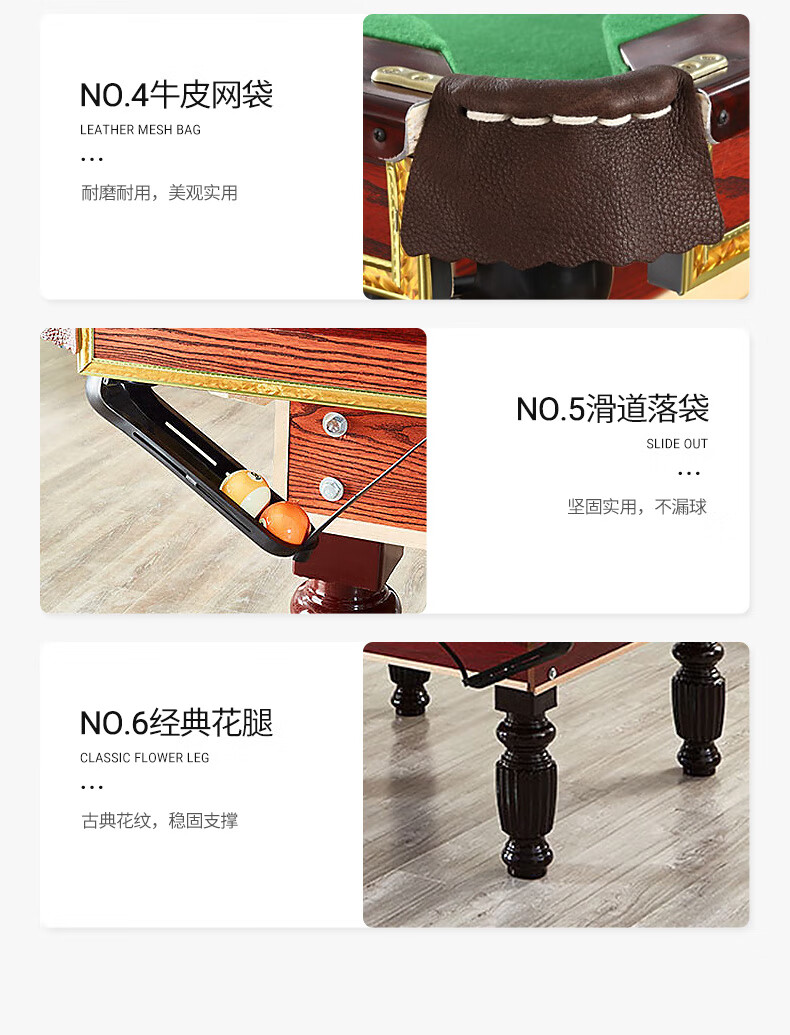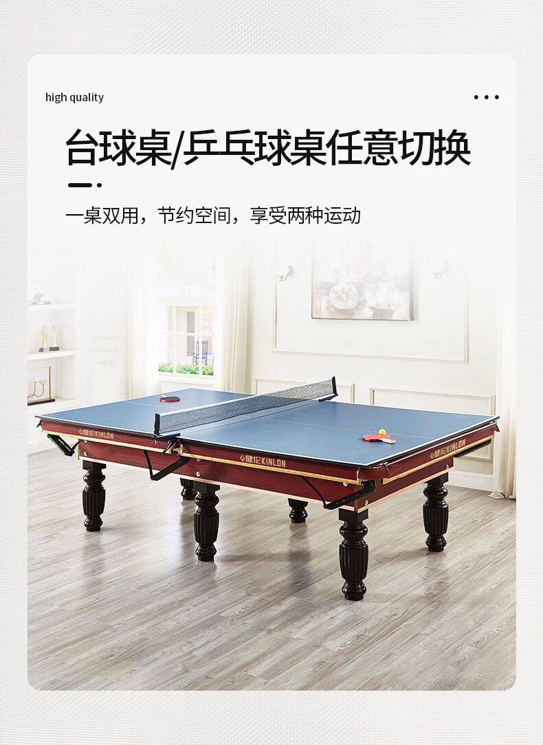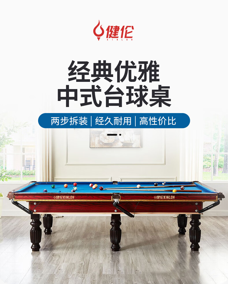 健倫(JEEANLEAN)JLAB134臺球桌高密度板 九尺家用高端美式黑八 高質(zhì)量采購款 自營