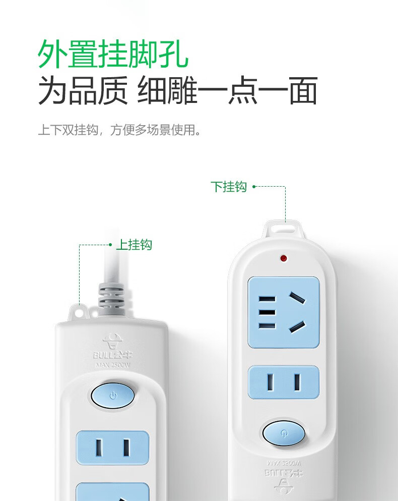 公牛插座多功能插排多用插板帶線家用桌面排插多孔插線板/拖線板/接線板/電插板/插座板 2插位總控開關(guān) 3米612 自營