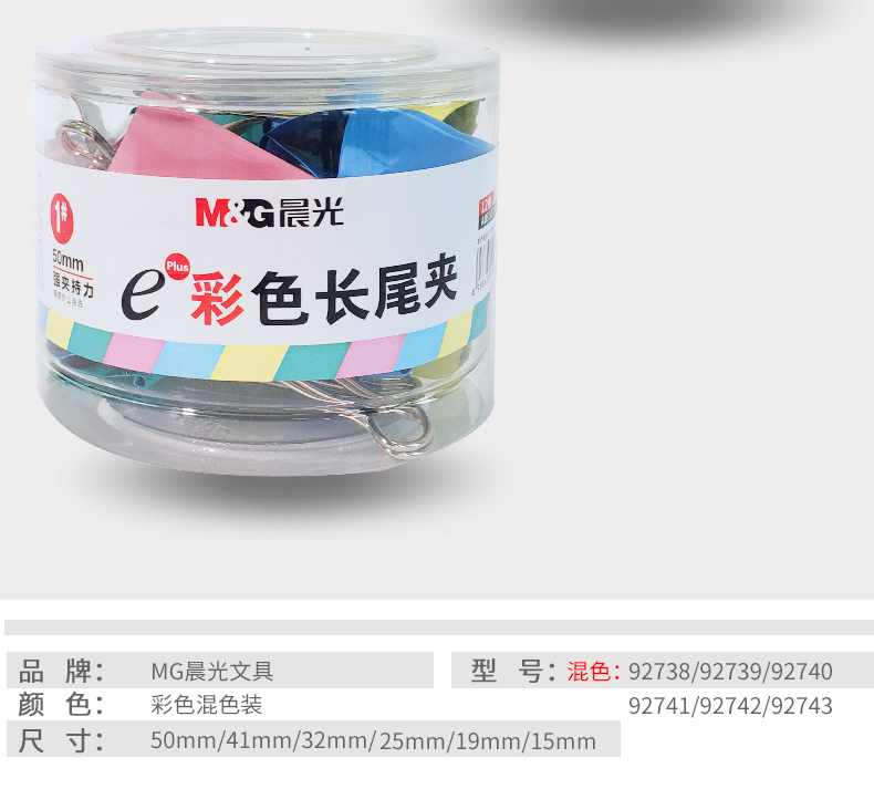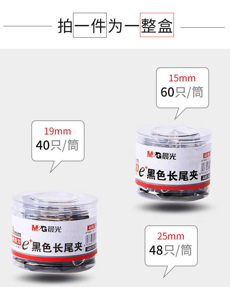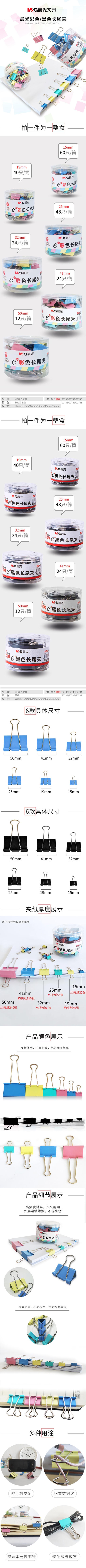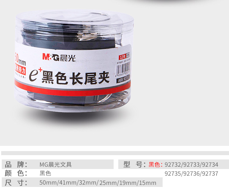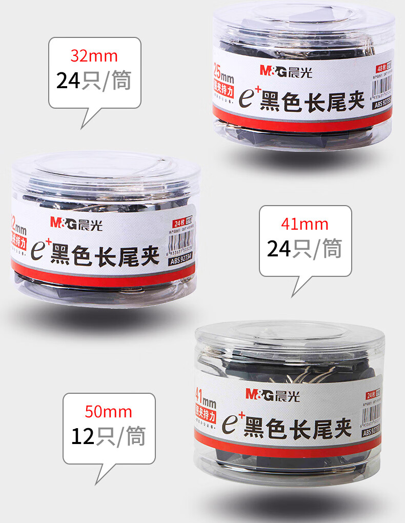 晨光(M&G)晨光 長尾夾燕尾夾學生辦公夾子鳳尾夾彩色大中小號蝴蝶夾鳳尾夾票據(jù)夾 1筒裝黑色50mm(12枚/筒) 自營