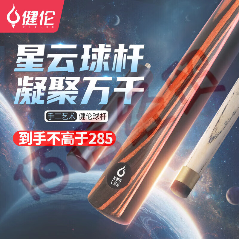 健倫星云臺球桿小頭臺球桿斯諾克黑8中式式黑八16彩桌球桿JLAB206 自營