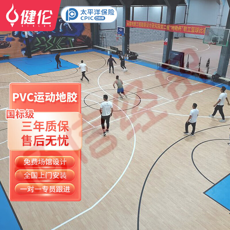 健倫(JEEANLEAN)籃球場地膠專業(yè)室內(nèi)籃球場館防滑通用標(biāo)準(zhǔn)籃球地膠墊PVC木紋4.5mm 自營