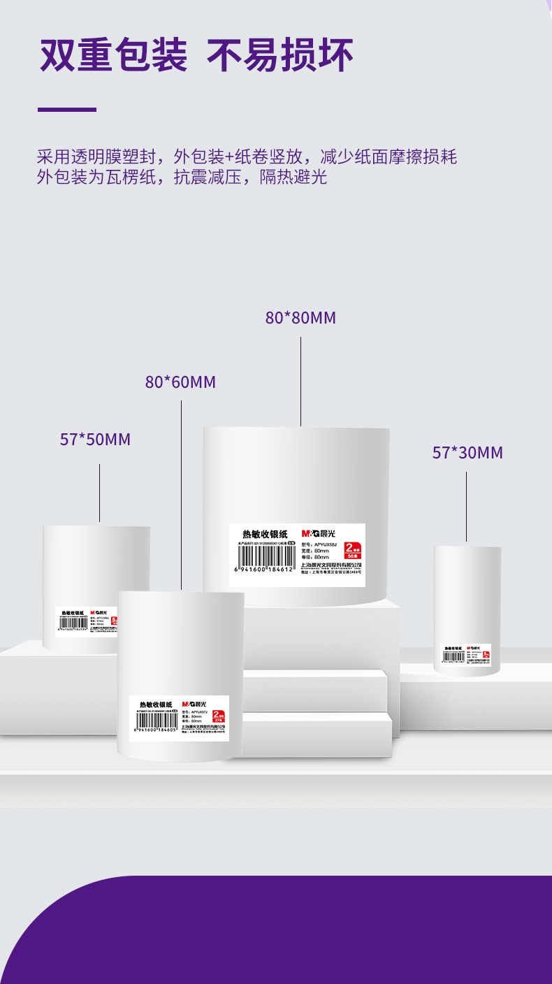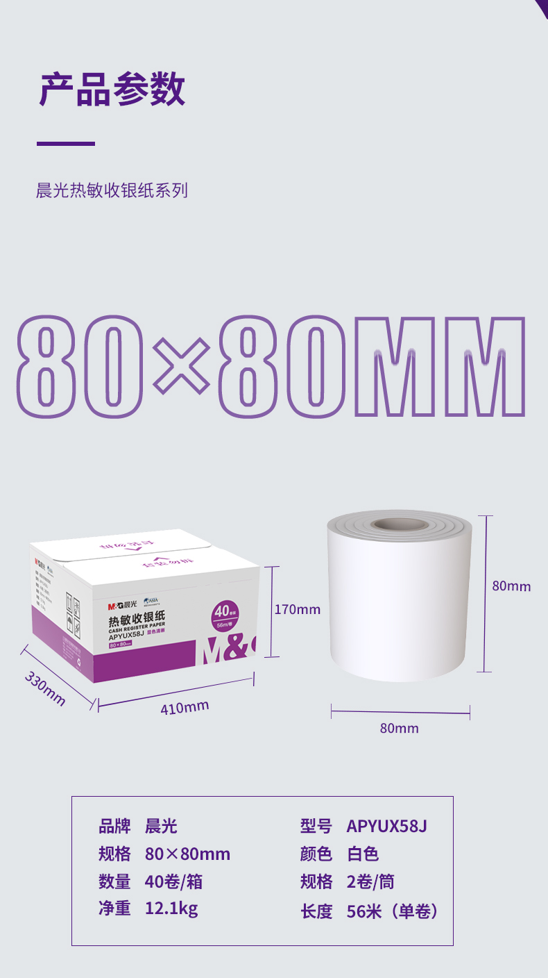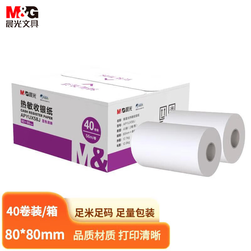晨光(M&G)文具56m熱敏收銀紙 銀聯(lián)刷卡機打印紙 80*80mm移動點單熱敏紙 40卷/箱APYUX58J 自營