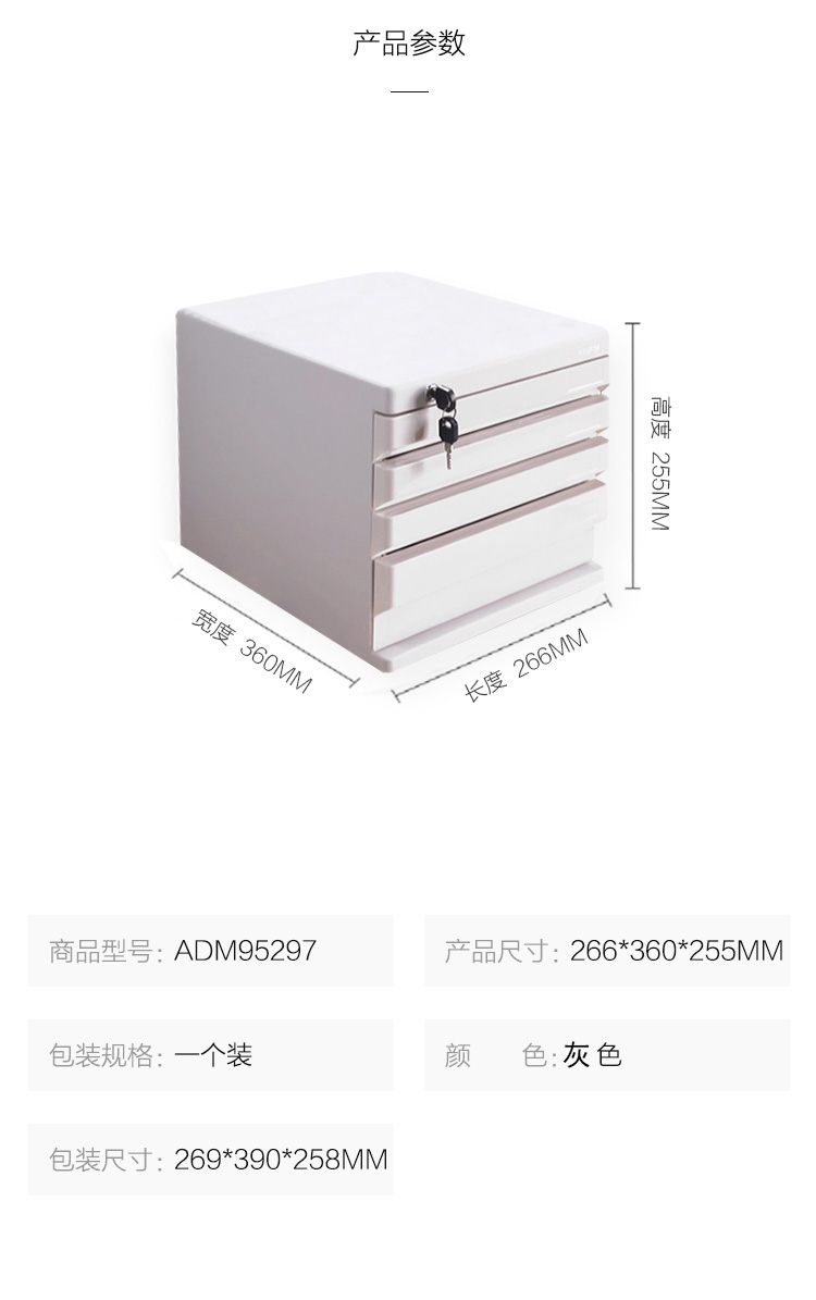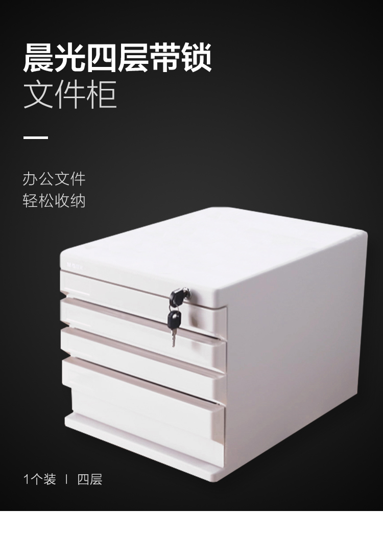 晨光(M&G)文具4層桌面文件柜 抽屜式拉手A4資料收納柜 帶索引標(biāo)簽 辦公用品 灰色、黑色單個(gè)裝ADM95297 自營