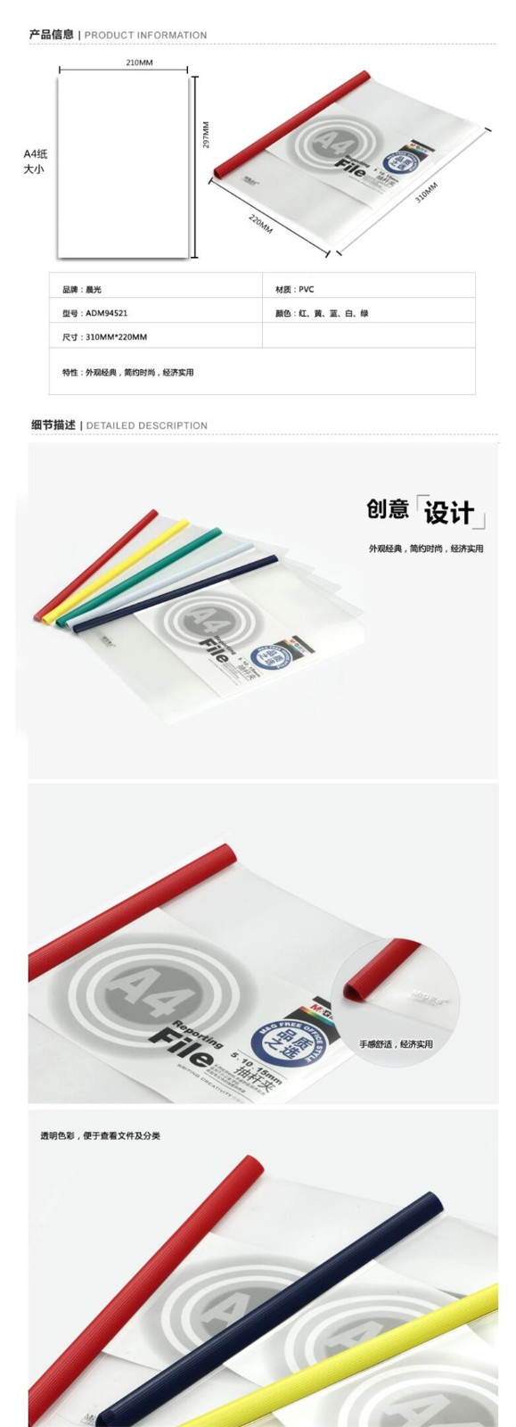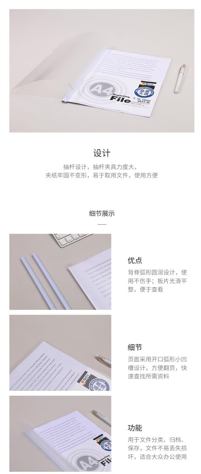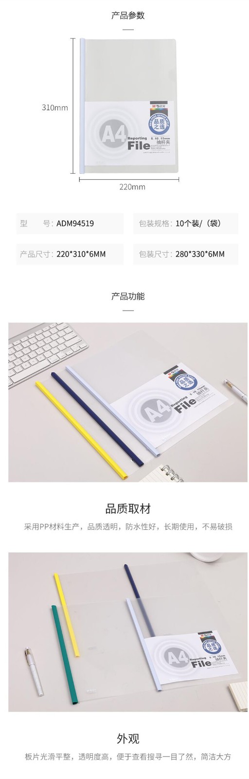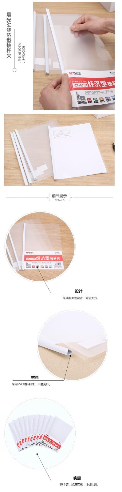 晨光 三角桿抽桿夾 辦公報告夾拉桿夾學生考試收納 資料整理收納文件夾 ADM94521A抽桿夾15mm白色10個/包 自營