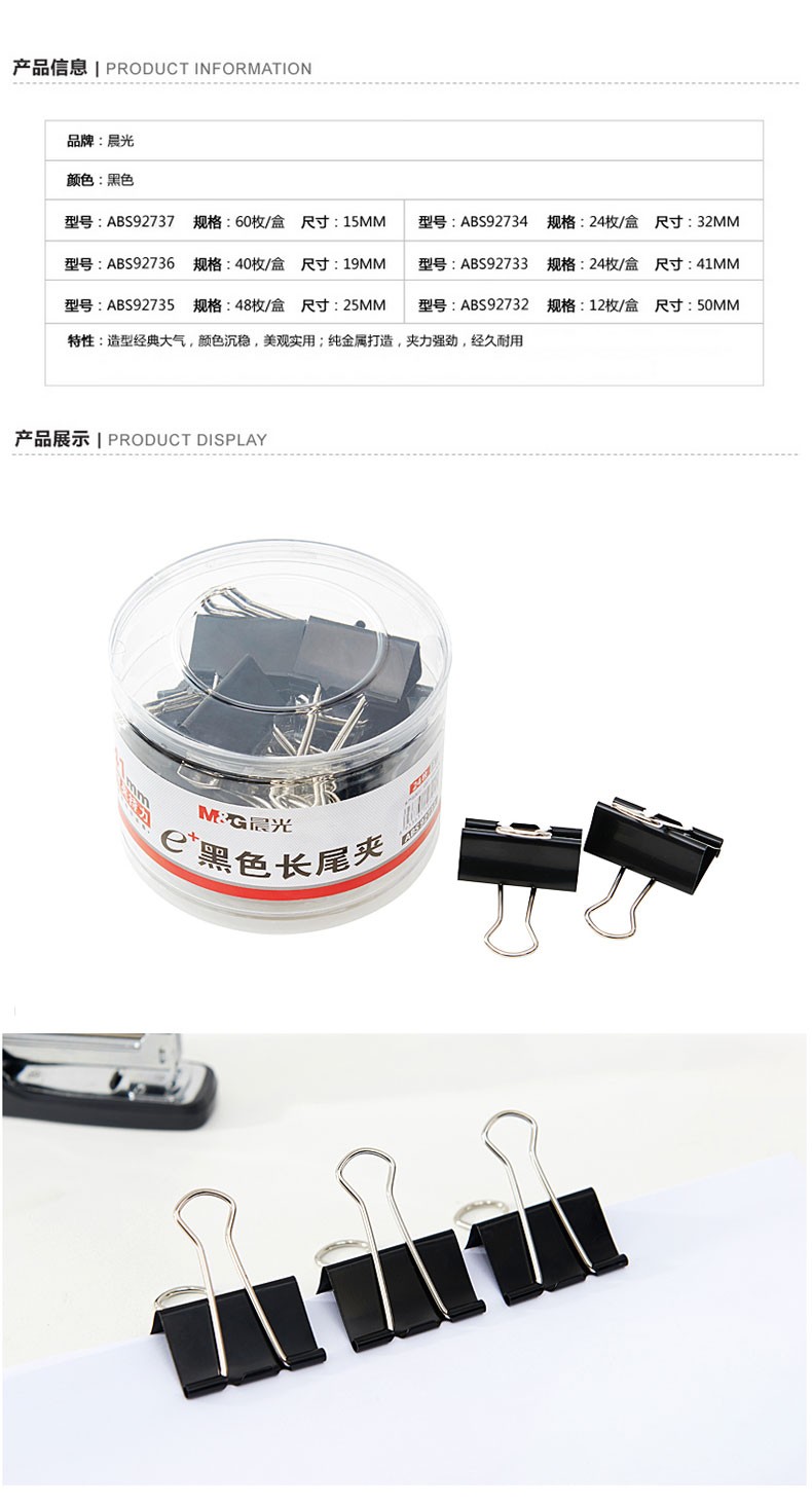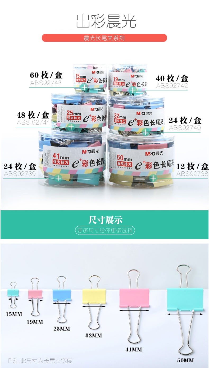 晨光(M&G)長尾夾大號夾子小號多功能書夾子試卷夾燕尾夾鳳尾夾文件夾子文具票夾辦公用品金屬小夾子固定 彩色-25mm(ABS92741)48只 自營