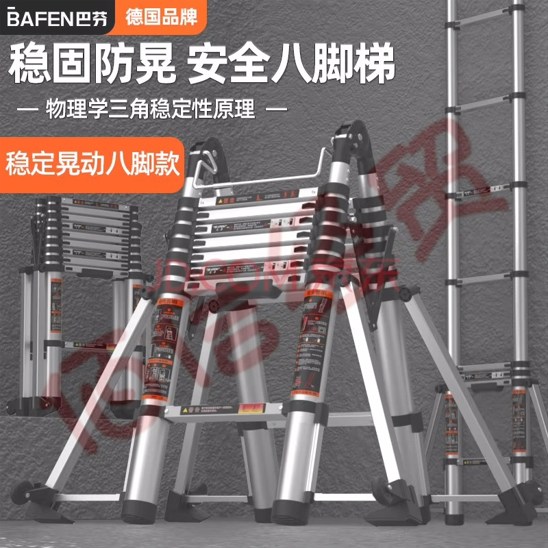 巴芬 德國(guó)品牌伸縮梯子家用人字梯加厚鋁合金便攜工程折疊多功能樓梯 【穩(wěn)固防晃旗艦款】直梯5.5米 自營(yíng)