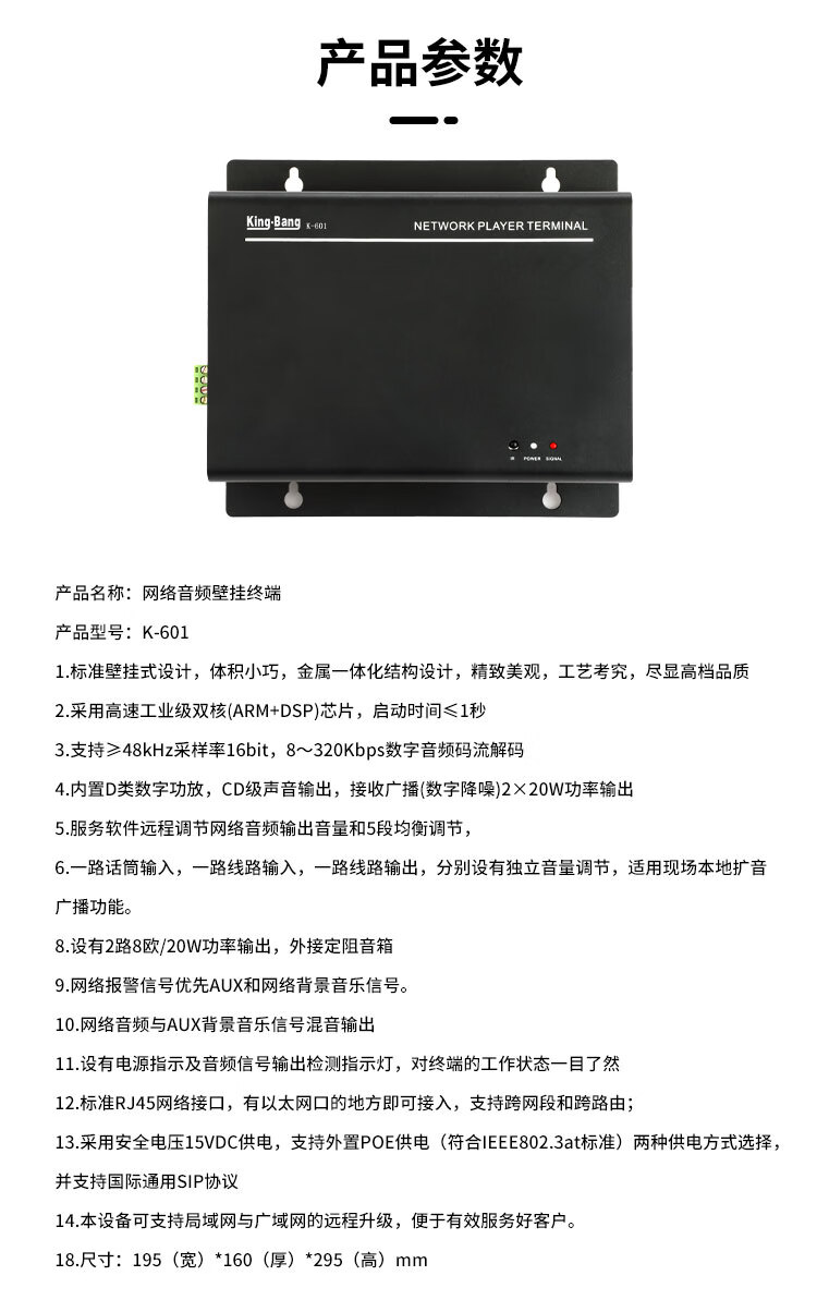 King-Bang京邦K-601網(wǎng)絡(luò)音頻壁掛終端 自營