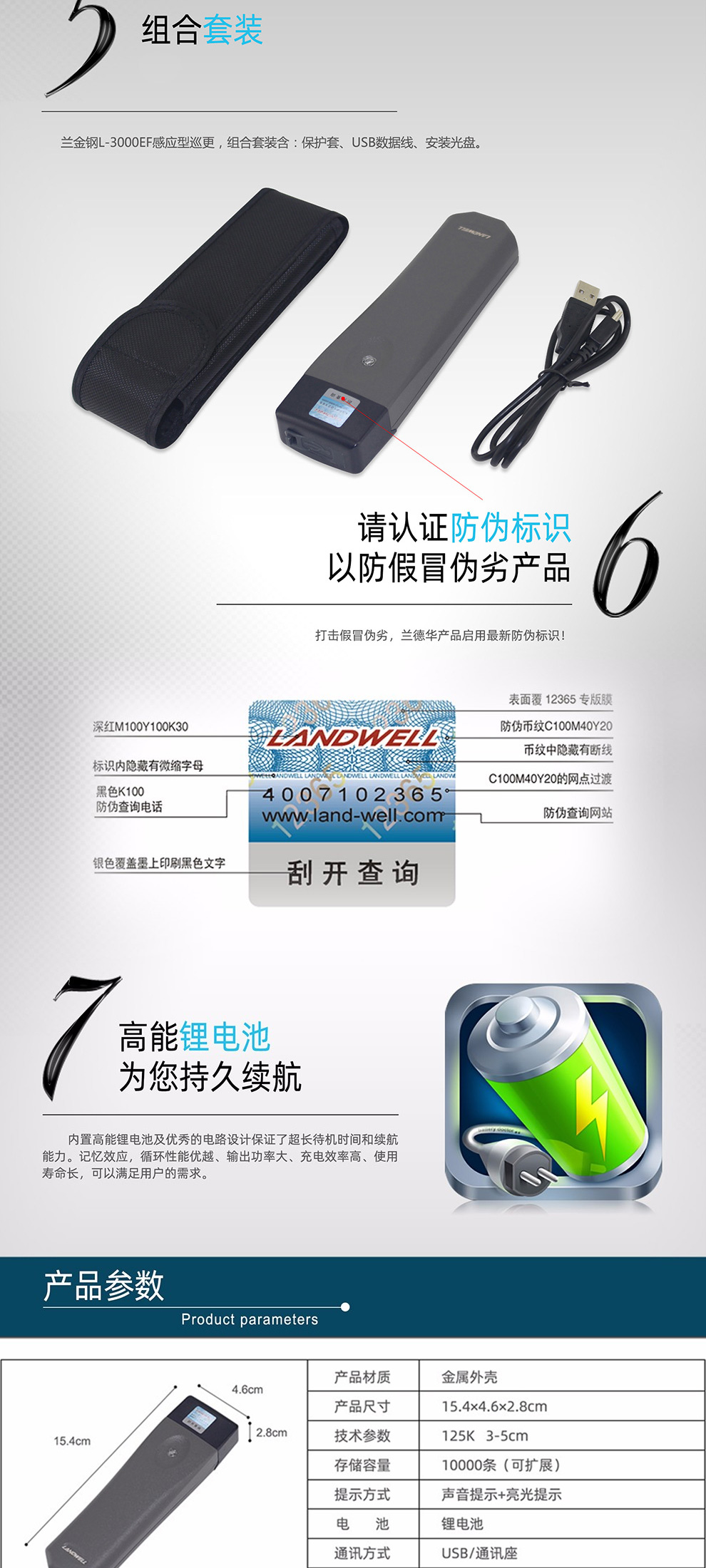 ¥1289.00蘭德華(LANDWELL)Landwell/蘭德華智能電子巡更系統(tǒng)新款巡查者3保安打點(diǎn)巡更棒巡查者3(中文)