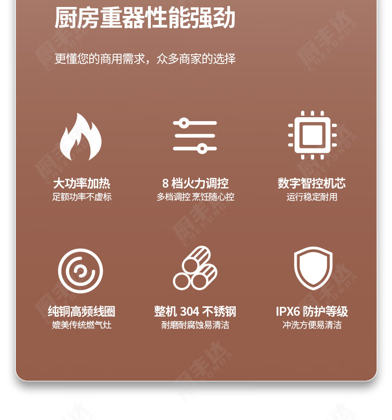 廚豐達(dá)大功率商用電磁爐304商用電磁灶大鍋灶學(xué)校單位食堂專用猛火電炒鍋電磁電灶臺12kw一價(jià)全包