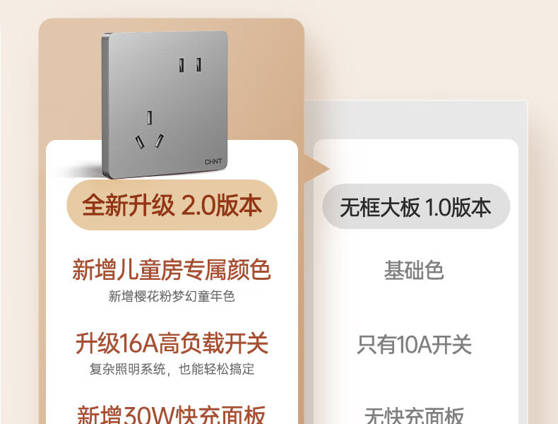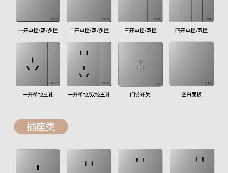 正泰(CHNT)開關(guān)插座墻壁面板家用86型面板斜五孔插座NEW6C10只裝幻銀灰(其它型號咨詢客服) 自營
