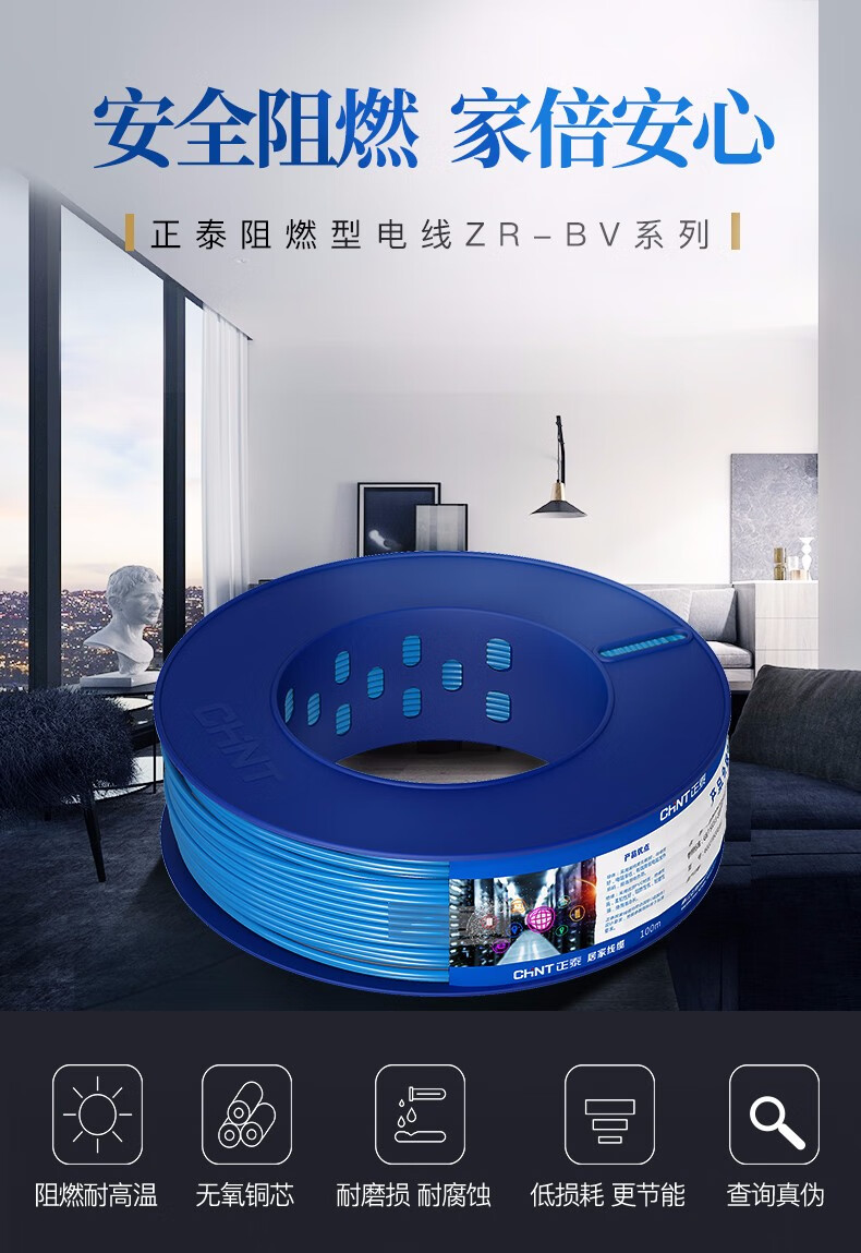 正泰(CHNT)電線電纜阻燃BV2.5方綠色單芯單股火線50米(其它型號咨詢客服) 自營