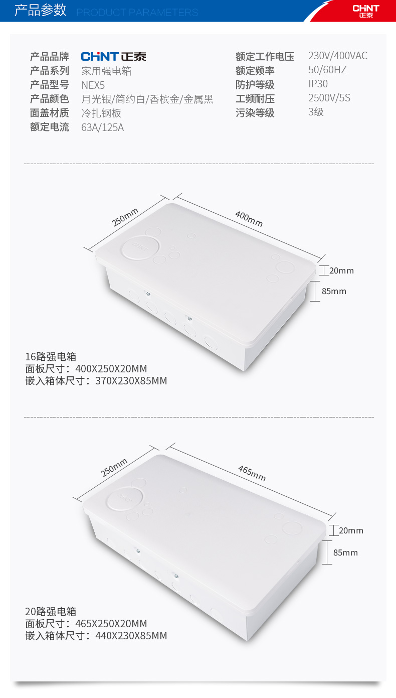 正泰(CHNT)強(qiáng)電箱家裝斷路器空開配電箱20回路暗裝NEX5-20回路銀色 自營(yíng)