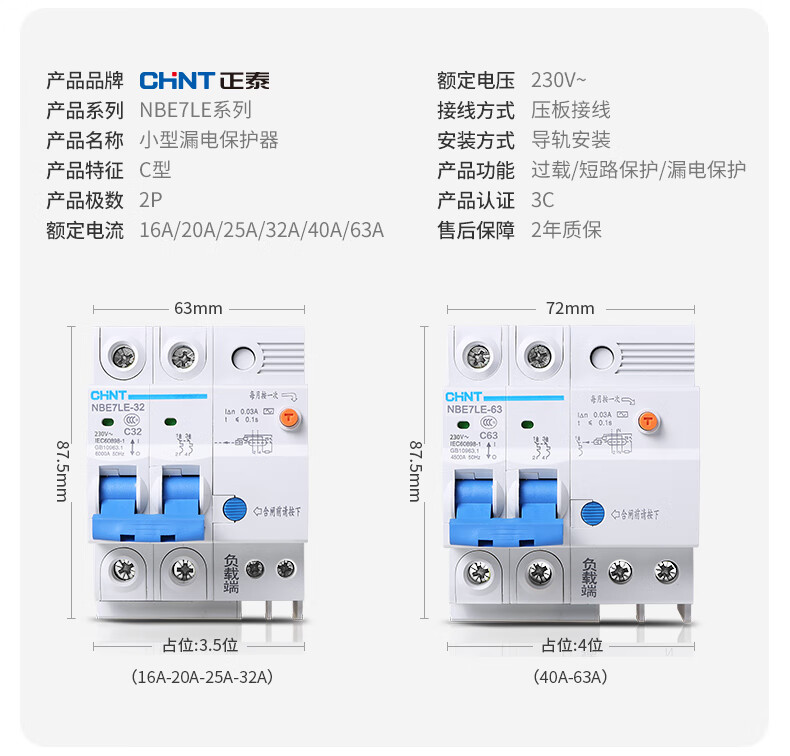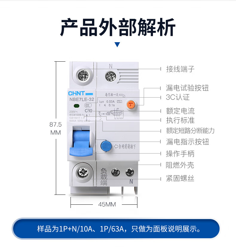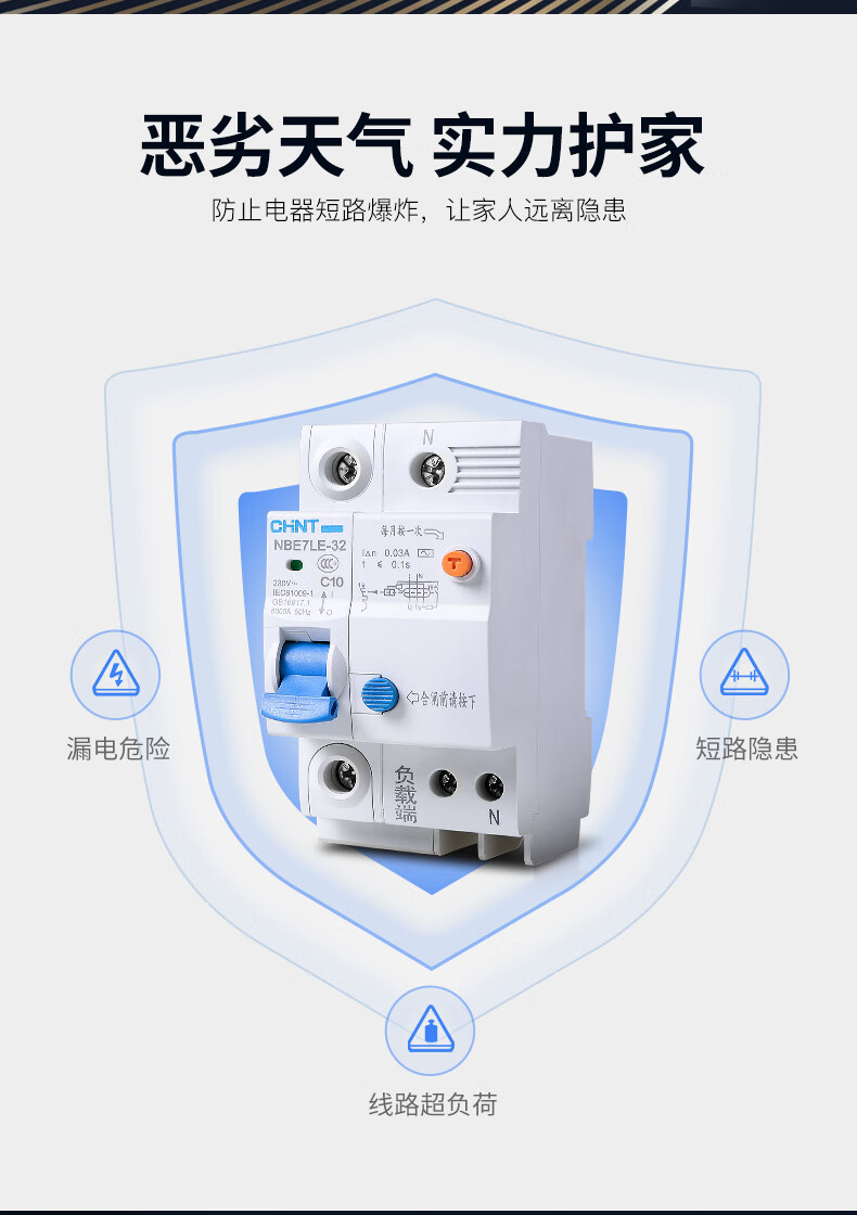 正泰(CHNT)空氣開關漏電保護開關斷路器空開小型家用NBE7LE2P10A 自營