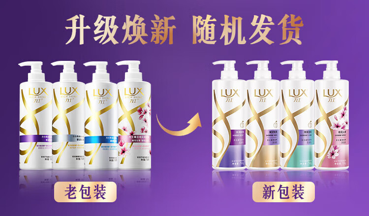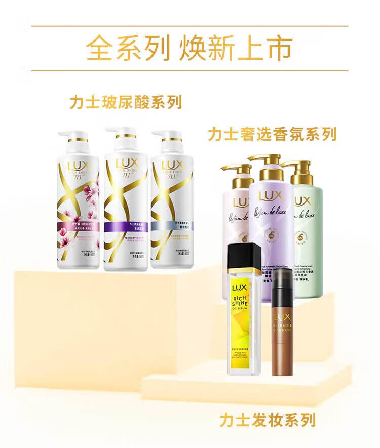 力士(LUX)(水潤絲滑、新活炫亮)柔亮洗發(fā)乳650G含玻尿酸奢寵香氛(一箱6瓶,整箱售) 自營