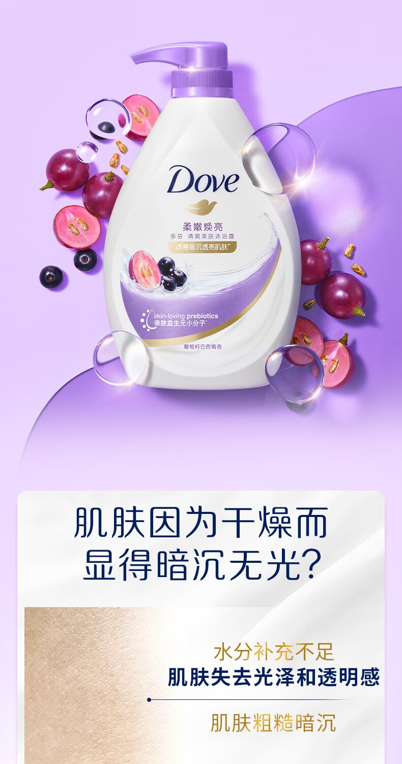 多芬(Dove)沐浴露(柔嫩煥亮、凈運醒膚)480g深層補水水嫩肌膚(一箱12瓶,整箱售) 自營