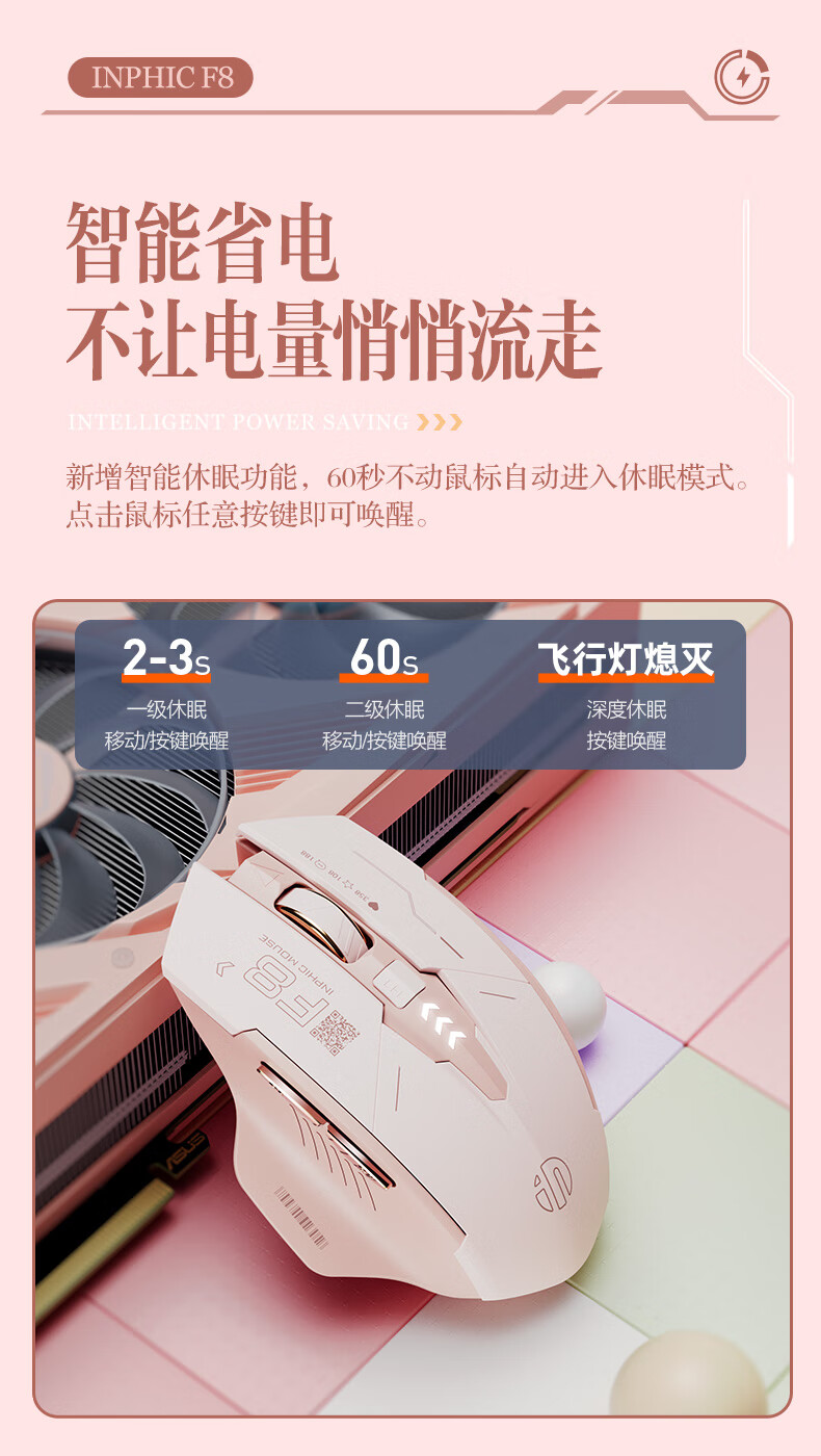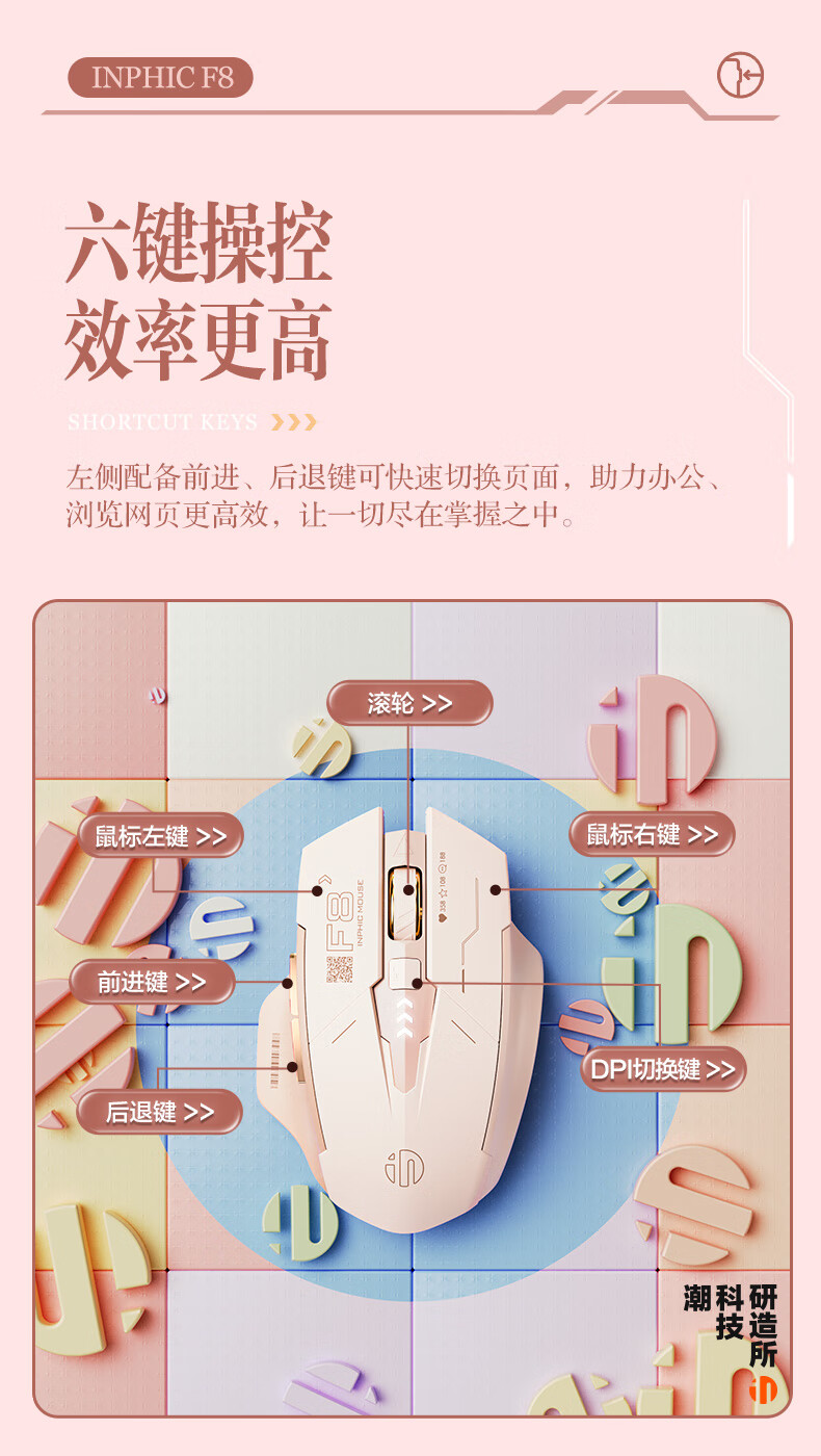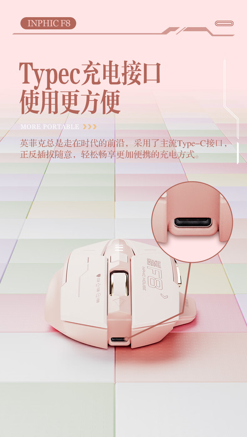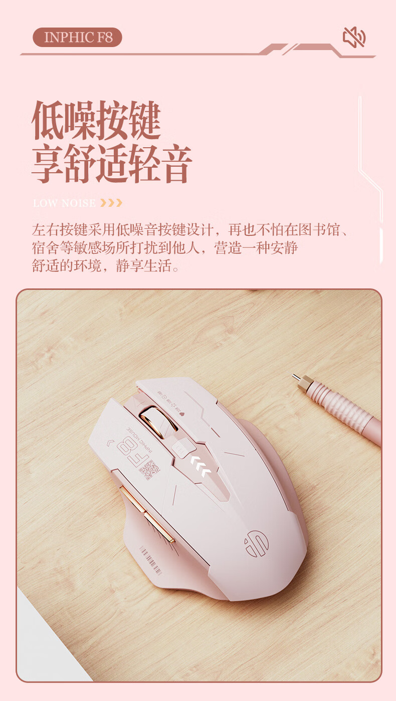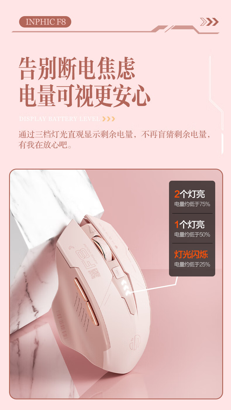 英菲克(INPHIC)F8無線藍牙鼠標充電女生辦公靜音便攜人體工學適用于惠普華碩華為筆記本電腦ipad平板輕音舒適【無線2.4G+女生高顏值+對稱設(shè)計】F8奶茶色
