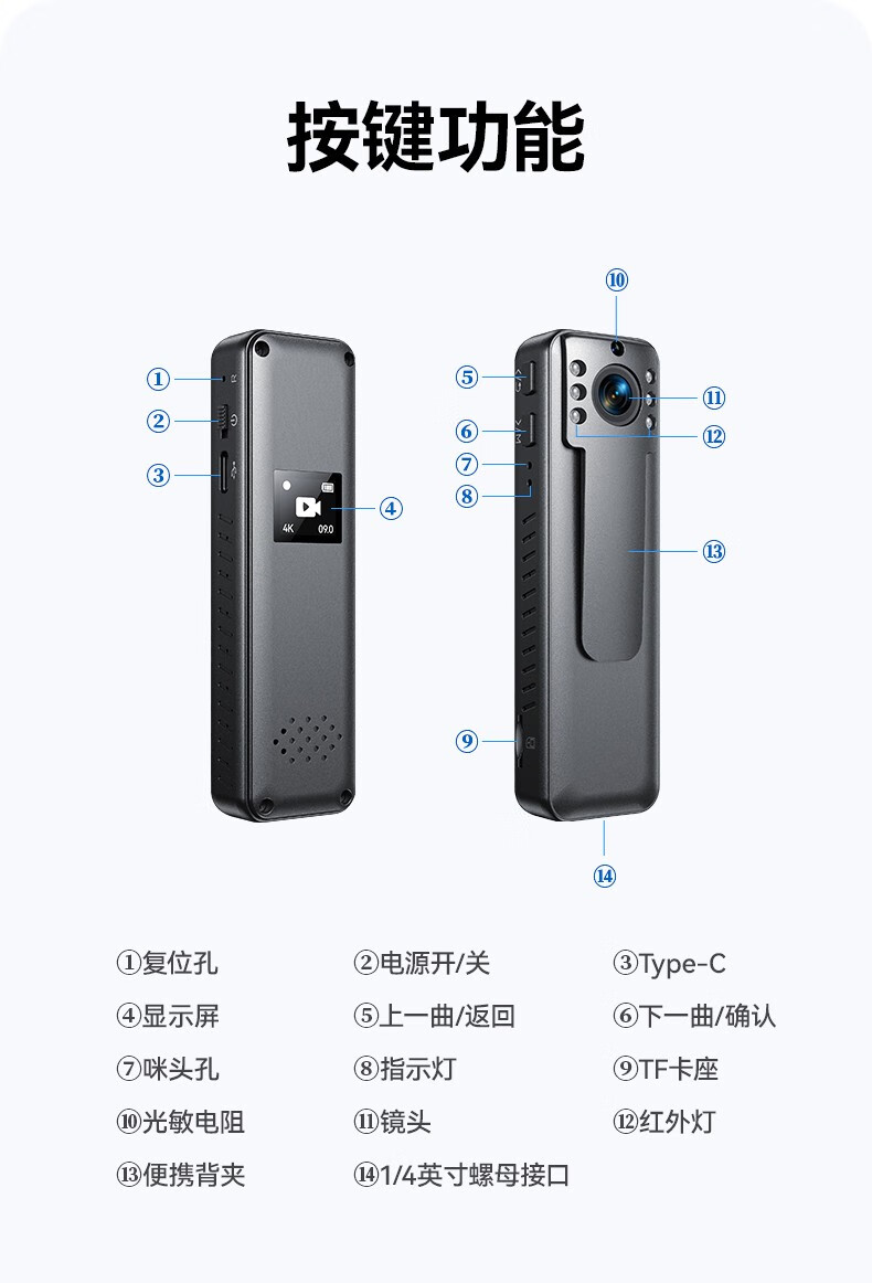 警藍(lán)偉業(yè)DSJ-M214K高清夜視攝像機(jī)隨身便攜攝像機(jī)小型隨身佩戴記錄儀512G 自營(yíng)