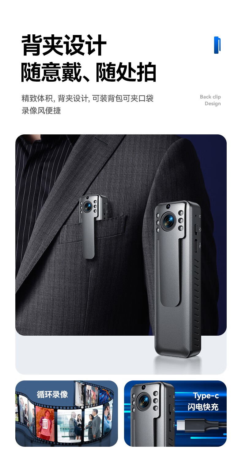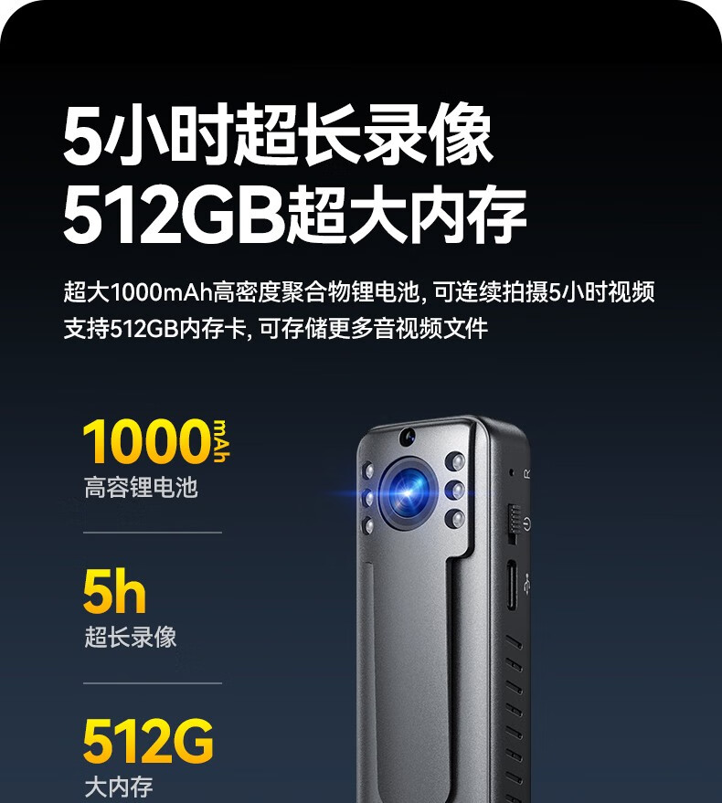 警藍(lán)偉業(yè)DSJ-M21CHD工作記錄儀4K高清夜視攝像機(jī)小型隨身佩戴工作記錄儀512G 自營