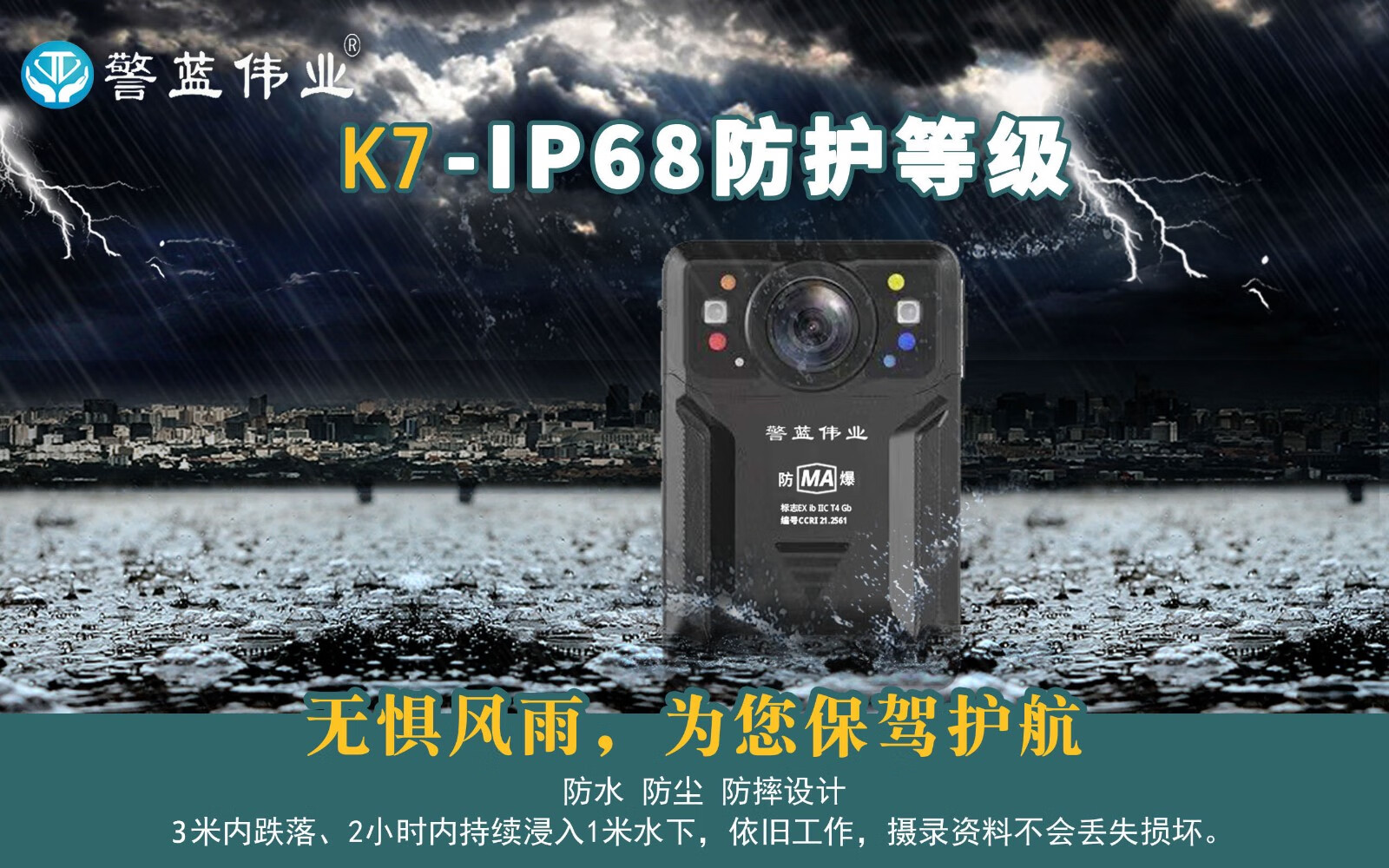 警藍(lán)偉業(yè)執(zhí)法記錄儀DSJ-K7防爆版高清3600萬像素紅藍(lán)爆閃可連續(xù)錄像8小時256G 自營