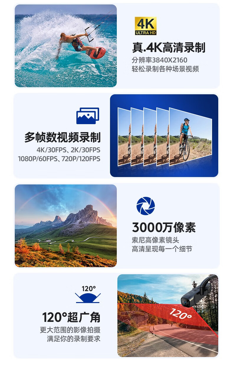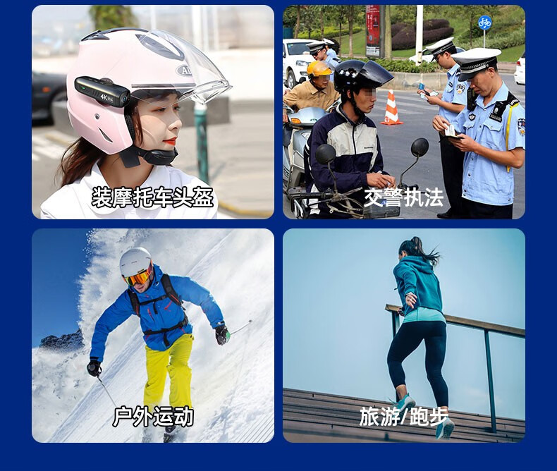 警藍偉業(yè)DSJ-H1耳掛式執(zhí)法記錄儀4K高清頭戴式運動錄像機wifi直連256G 自營