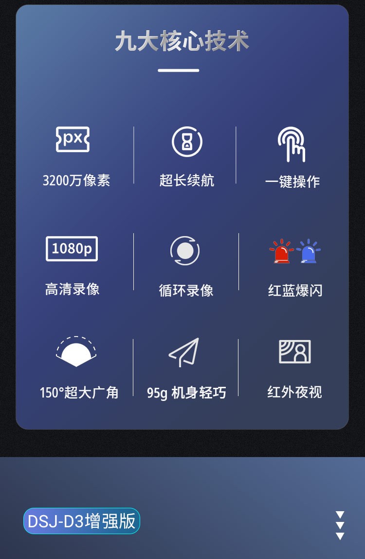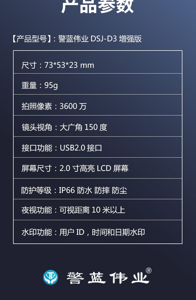 警藍偉業(yè)DSJ-D3增強版執(zhí)法記錄儀高清夜視小型胸前佩戴單警執(zhí)法儀128G 自營