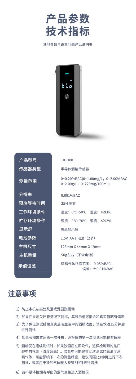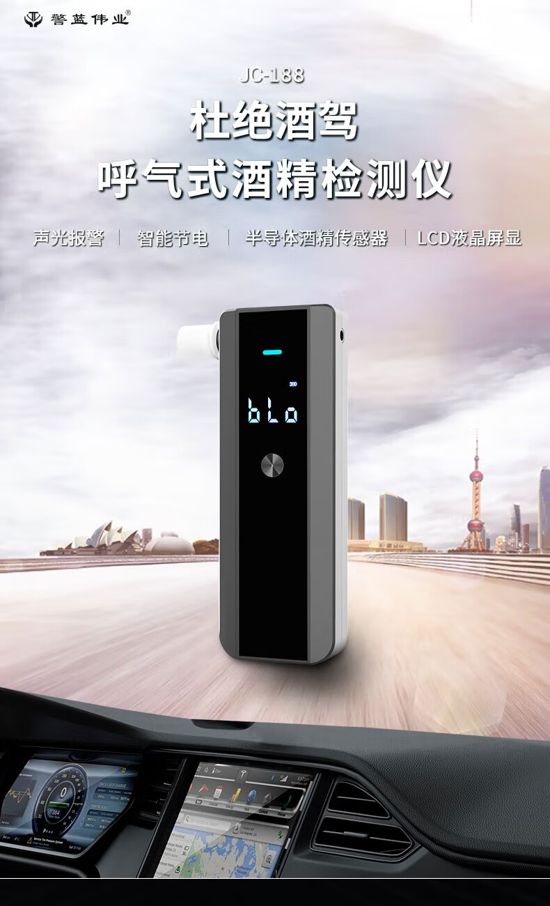 警藍偉業(yè)酒精測試儀吹氣式呼氣酒精檢測儀查酒駕專用檢測儀測酒駕JC-188黑色 自營