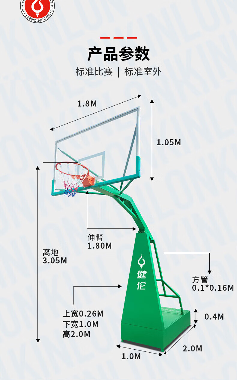 健倫(JEEANLEAN)JLGAA61 籃球架 成人訓(xùn)練比賽標(biāo)準(zhǔn)電動(dòng)液壓籃球架(含防撞包)