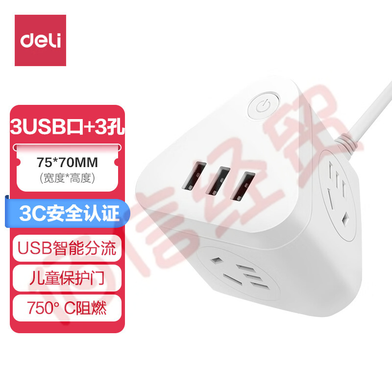 得力(deli)三角魔方插座智能USB插座插排/插線板/接線板/排插3USB接口+3組合孔總控全長(zhǎng)1.5米18321 自營(yíng)