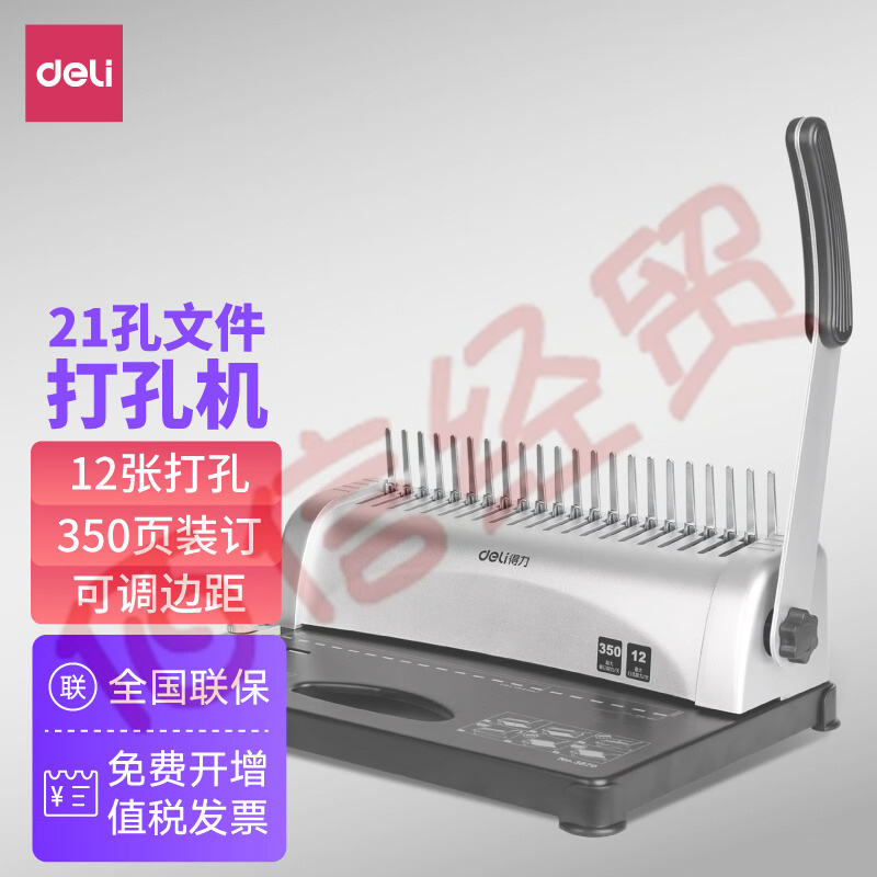 得力(deli)膠圈/夾條裝訂機21孔文件打孔機梳式財務(wù)裝訂機3870單次可打12張 自營
