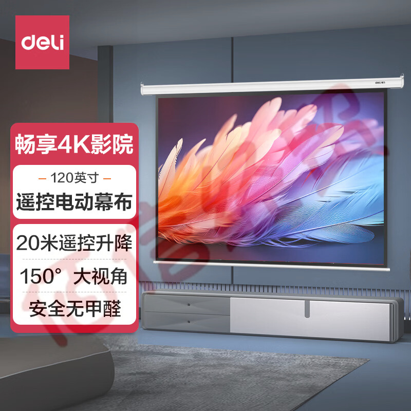 得力(deli)120英寸4:3遙控電動投影幕布投影布適配堅果極米當貝小米投影機投影機投影儀投影幕布50441 自營