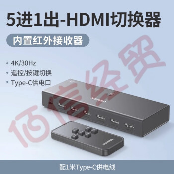 綠聯(lián)(UGREEN)hdmi切換器分配器五90801-HDMI1.4膠殼款【5進(jìn)1出】遙控切換 自營