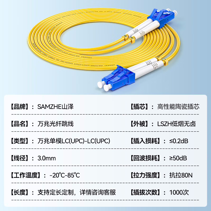 山澤(SAMZHE) 光纖跳線電信級(jí)LC-LC LC-FC LC-SCST單模雙芯 單模雙芯 3米 自營(yíng)