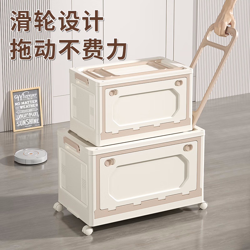 拉桿書本收納箱卡其色-大號(hào)【帶萬向輪+拉桿】 1個(gè)裝